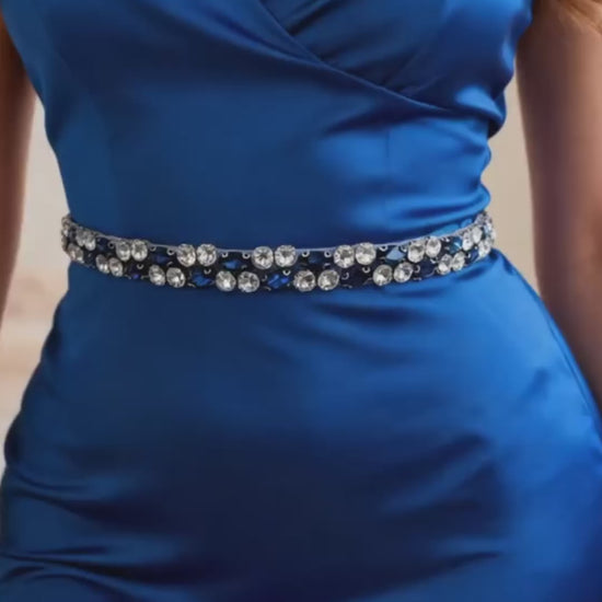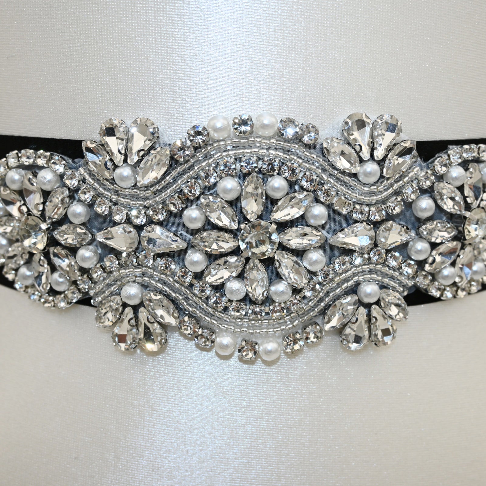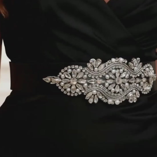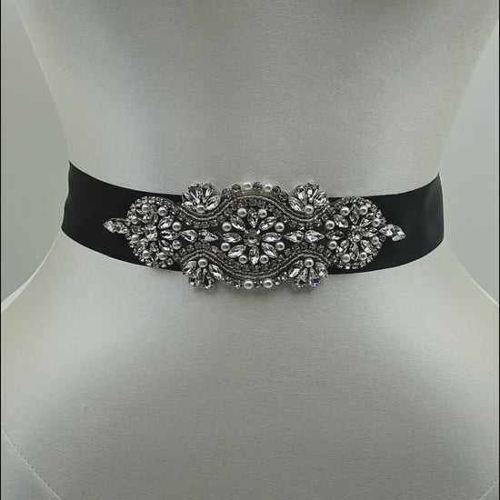 Elevate your look with this black rhinestone and pearl belt, perfect for weddings, proms, and special occasions.
