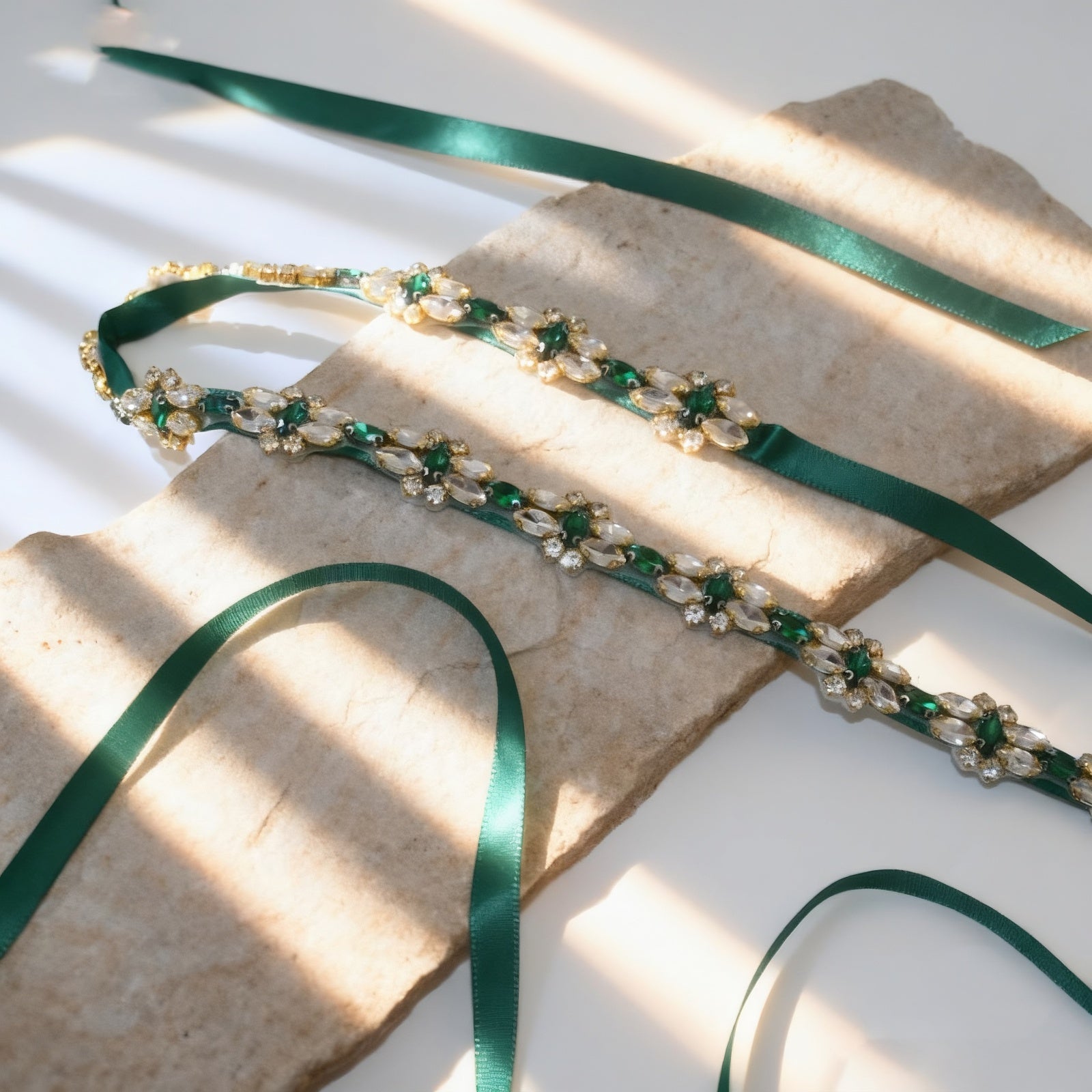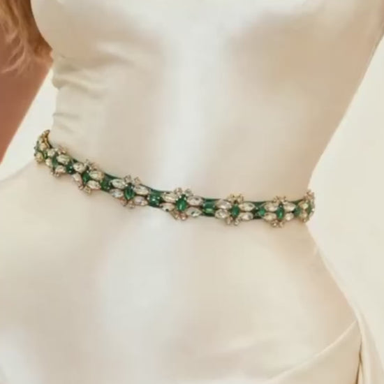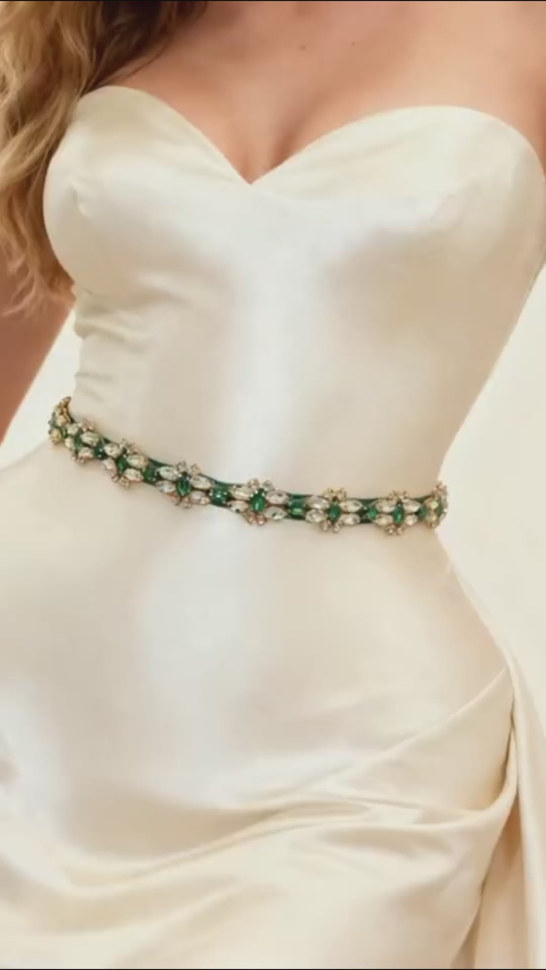 Elevate your look with this green rhinestone belt, perfect for weddings, proms, and special occasions.