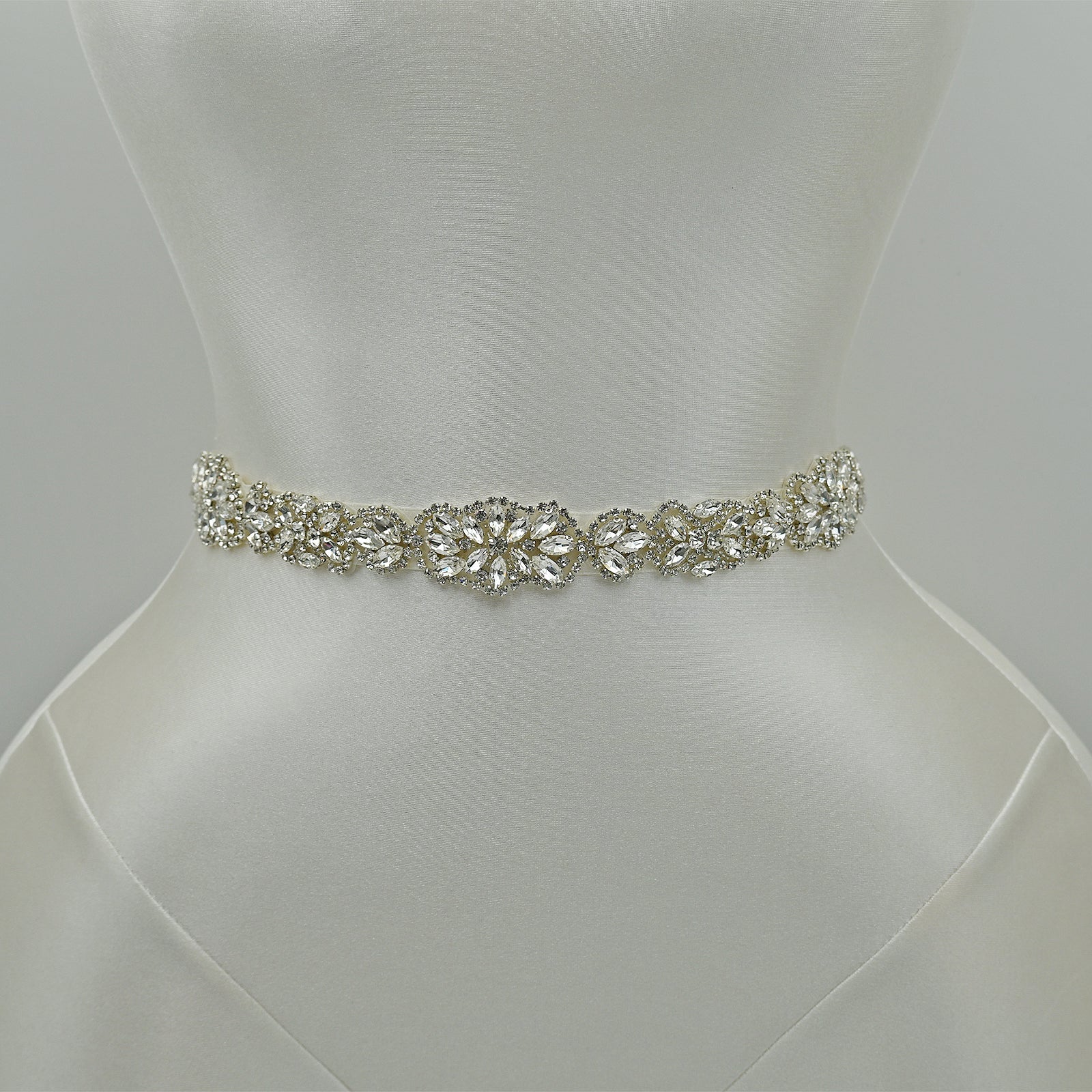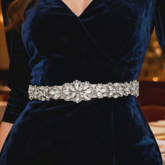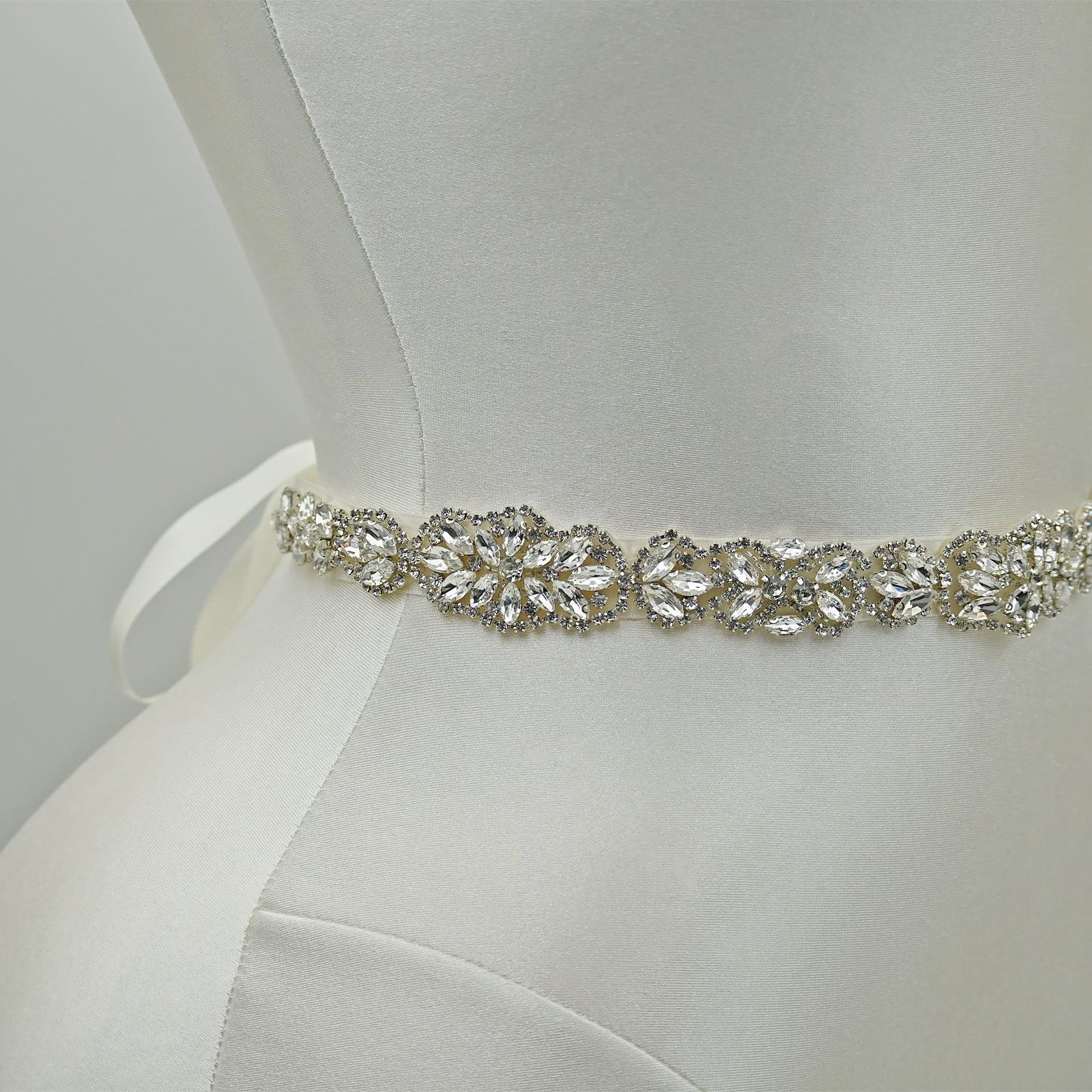 Elevate your look with this off white rhinestone belt, perfect for weddings, proms, and special occasions.