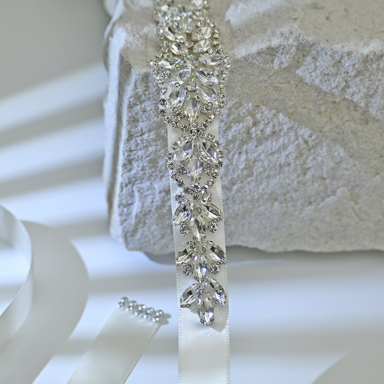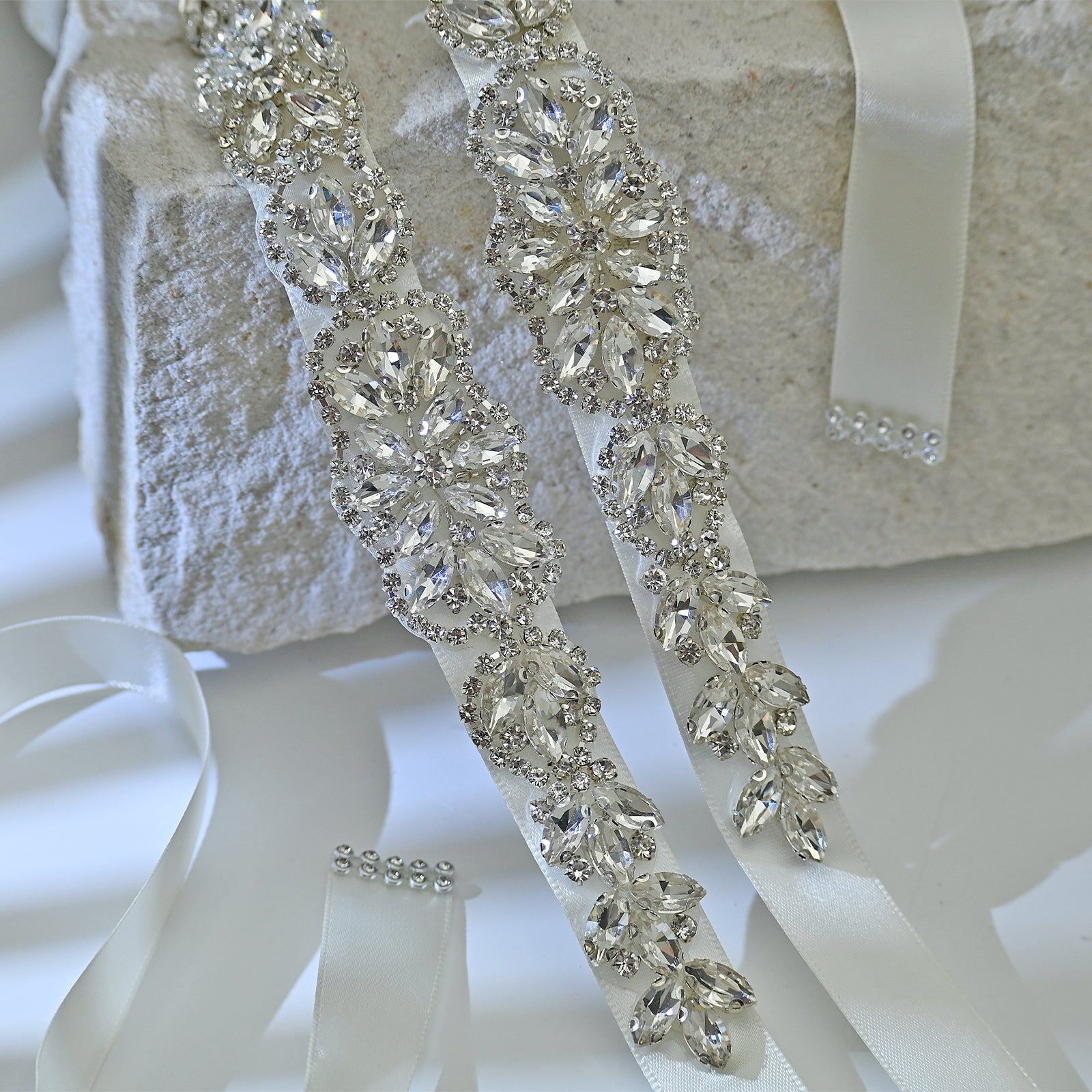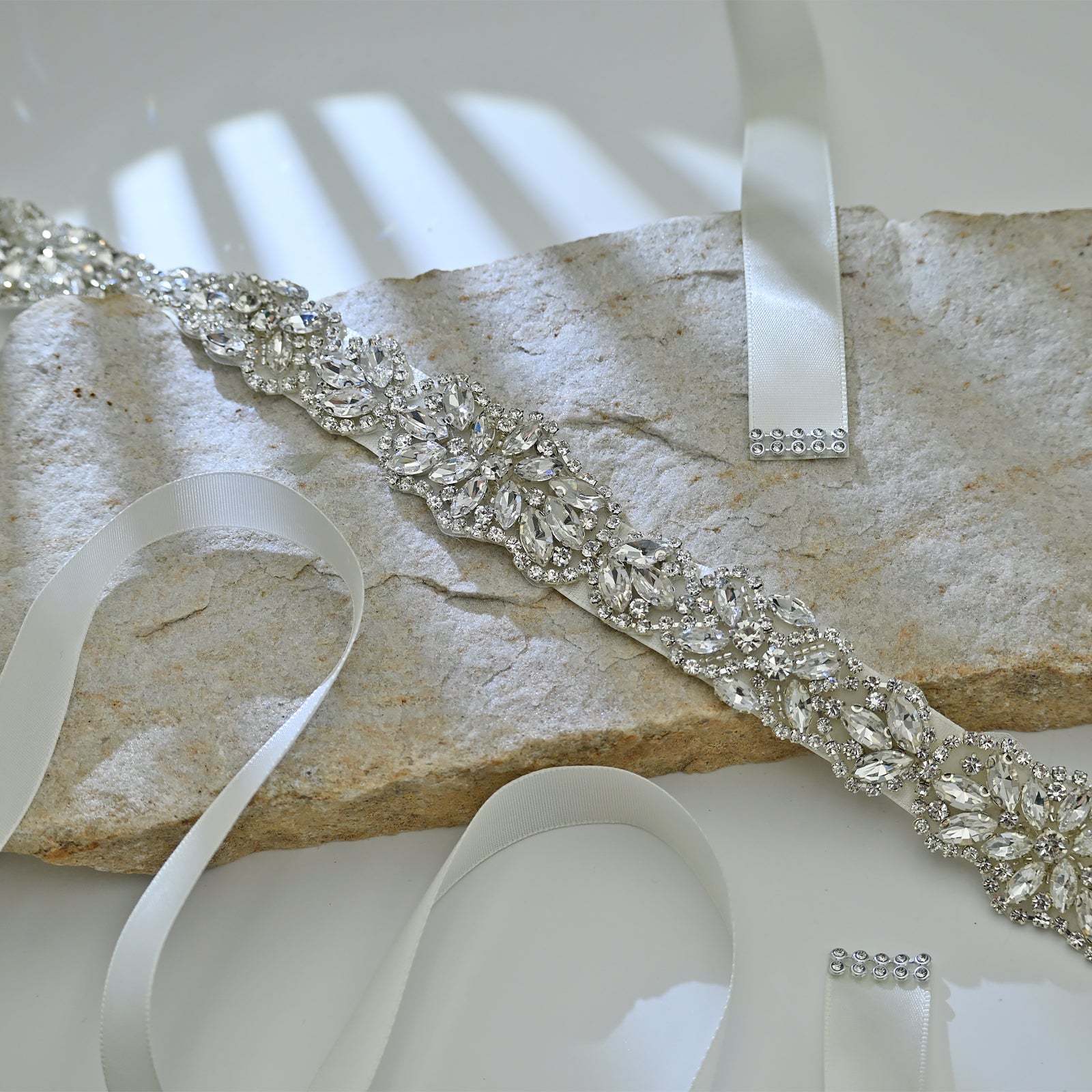 Elevate your look with this off white rhinestone belt, perfect for weddings, proms, and special occasions.