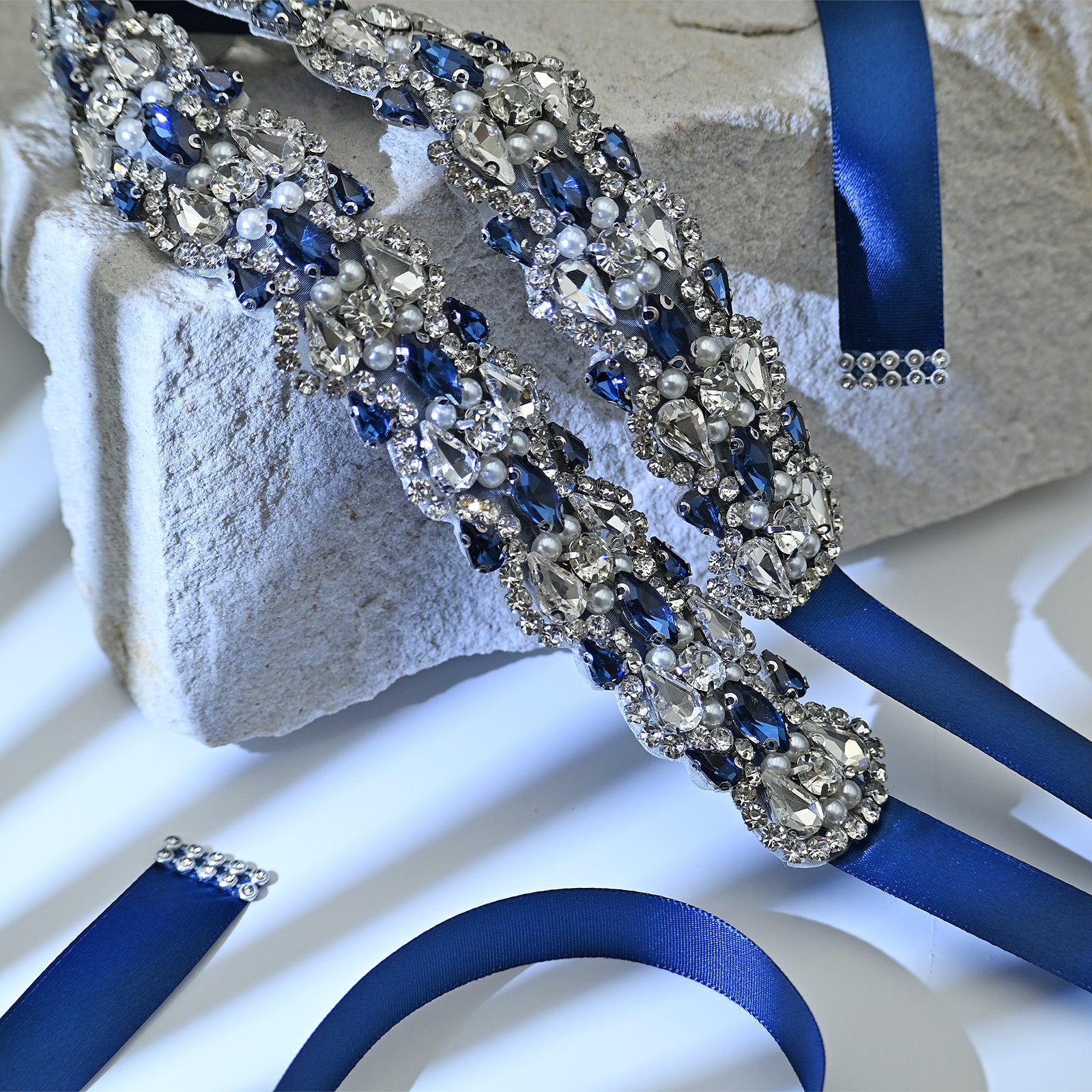 Elevate your look with this navy rhinestone belt, perfect for weddings, proms, and special occasions.