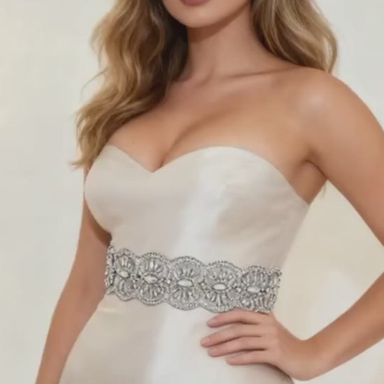 Elevate your look with this off white rhinestone belt, perfect for weddings, proms, and special occasions.