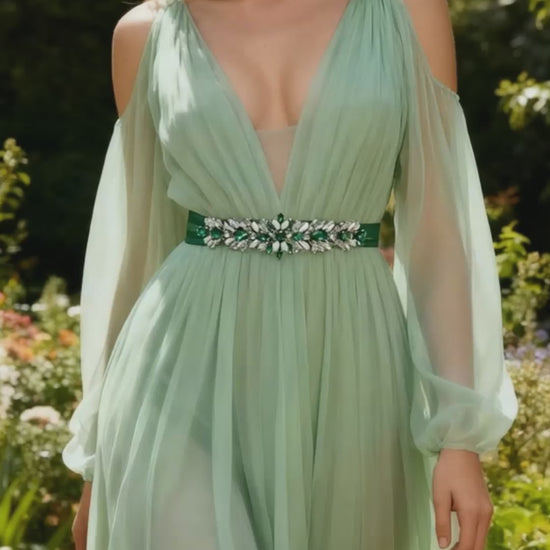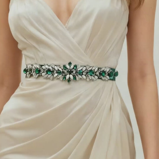 Elevate your look with this green rhinestone belt, perfect for weddings, proms, and special occasions.