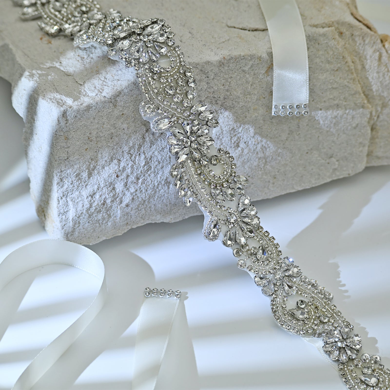 Elevate your look with this ivory rhinestone belt, perfect for weddings, proms, and special occasions.