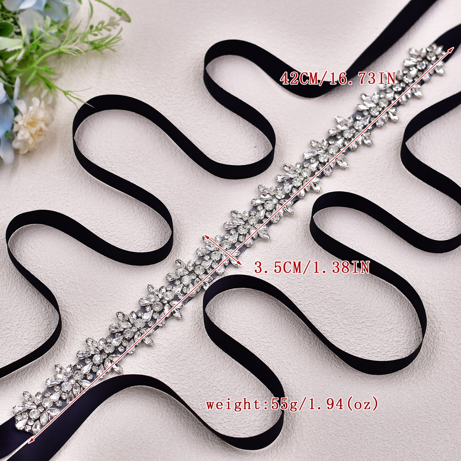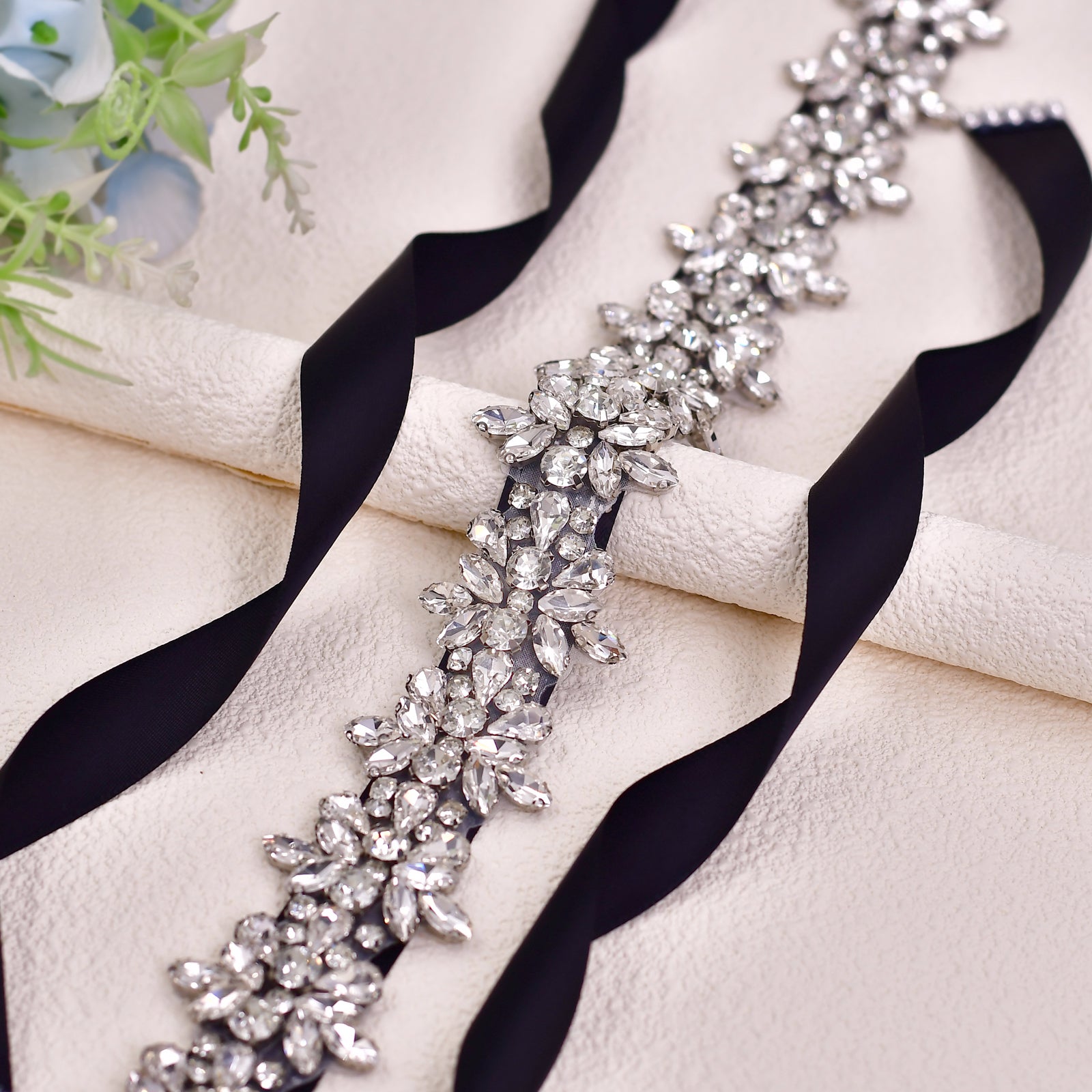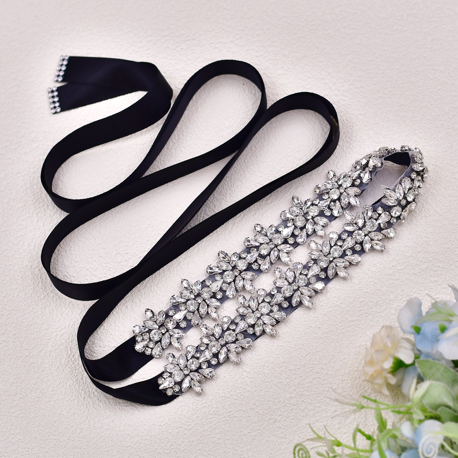 BRIDELLA BS269 New Black Dress Belt Glass Silver Diamond Ladies High-End Clothing Accessories