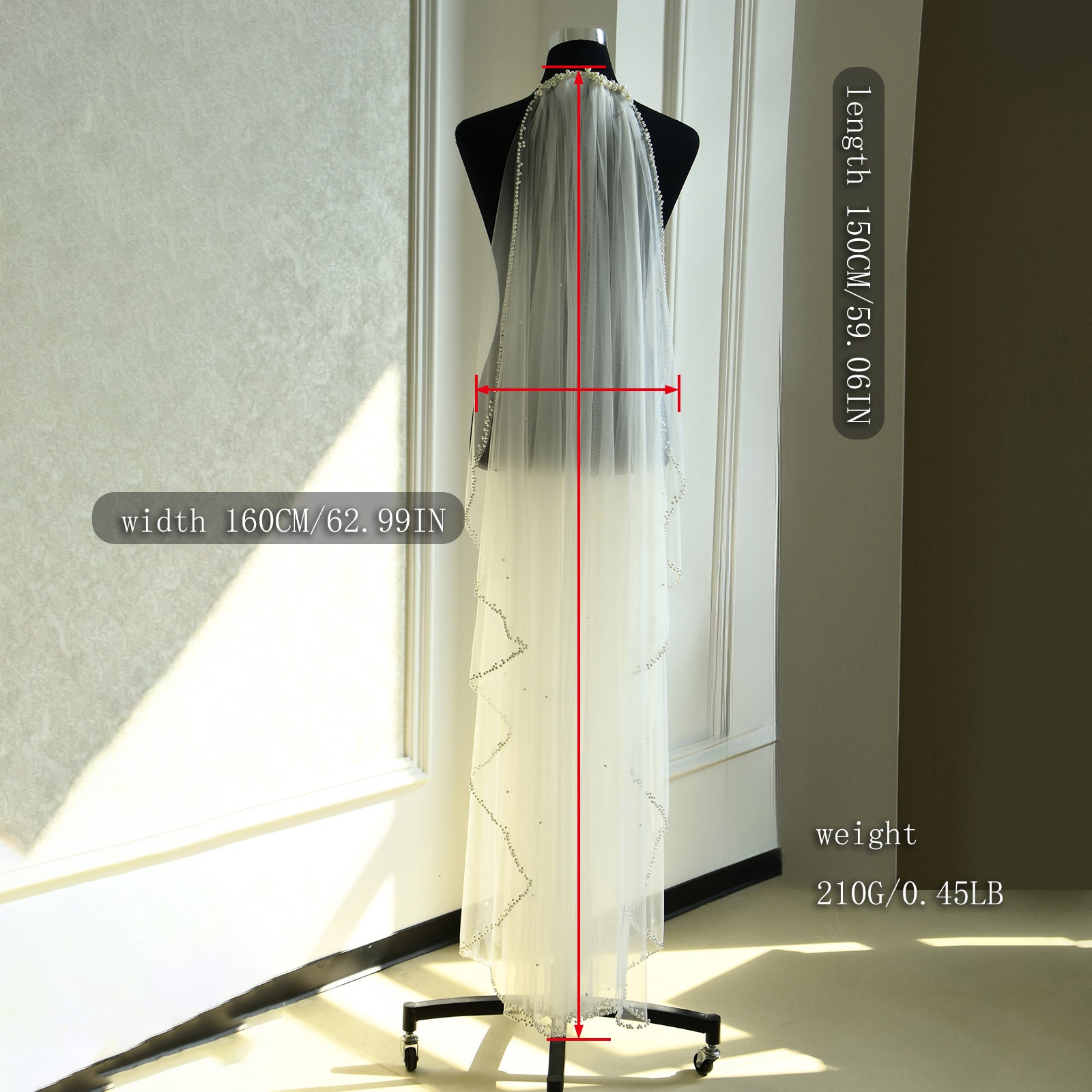 BRIDELLA BM99 New Bridal Veil Double Band Hair Comb Beaded Pearl Long Train Gentle Fashion Wedding Accessory