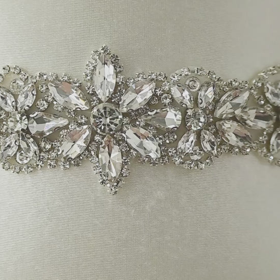 Elevate your look with this ivory rhinestone belt, perfect for weddings, proms, and special occasions.