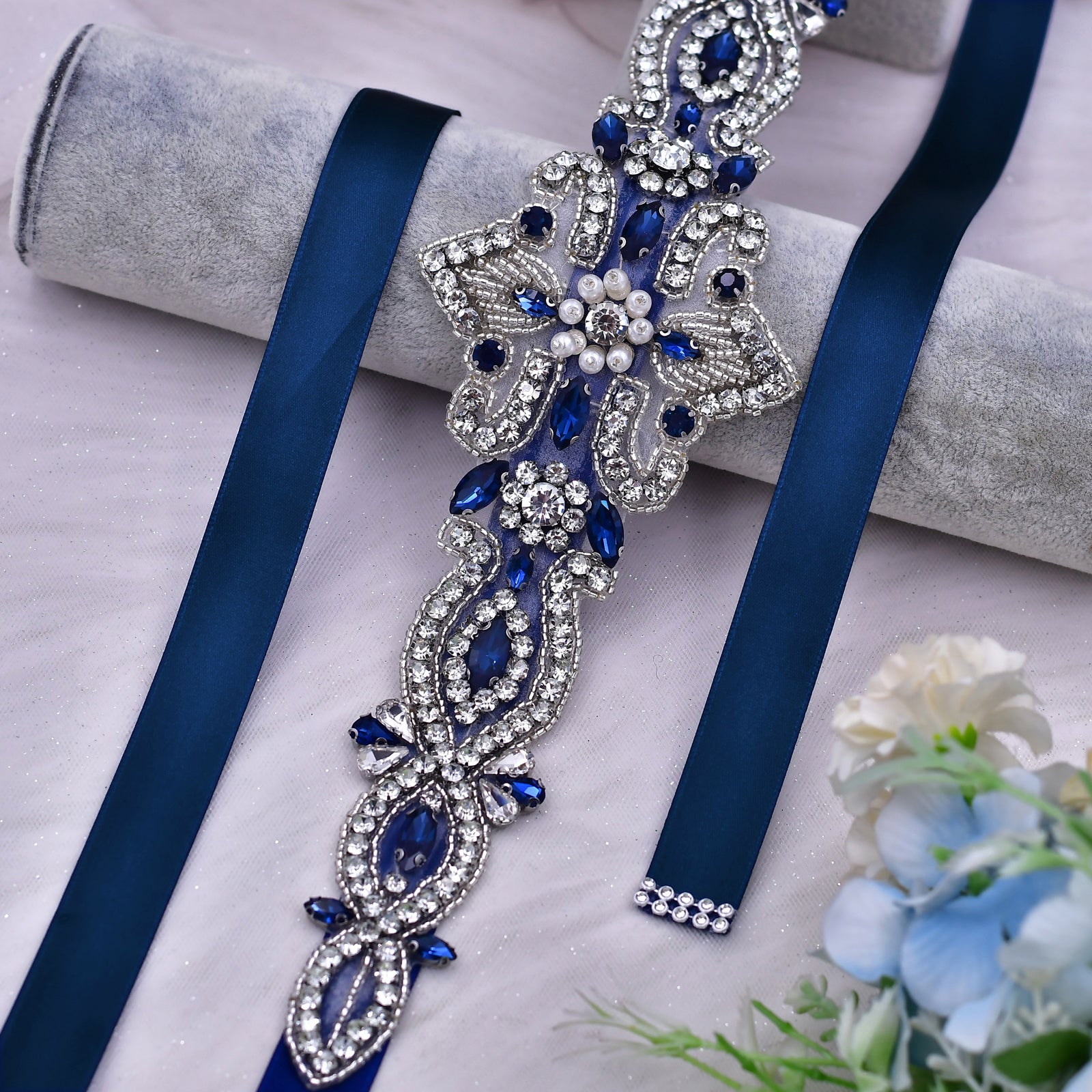 BRIDELLA BS245ML New Navy Blue Dress Belt Rhinestone Wedding Accessories