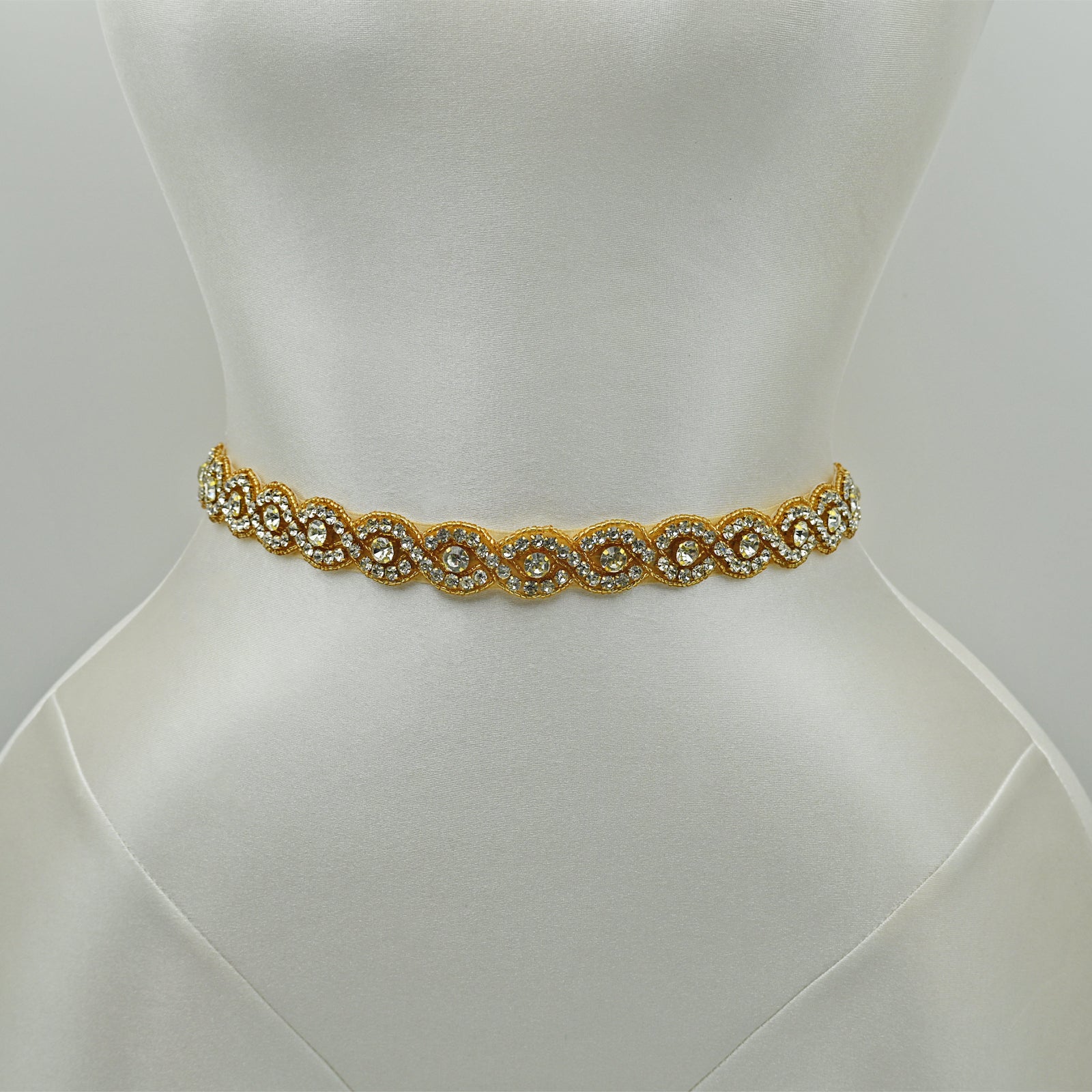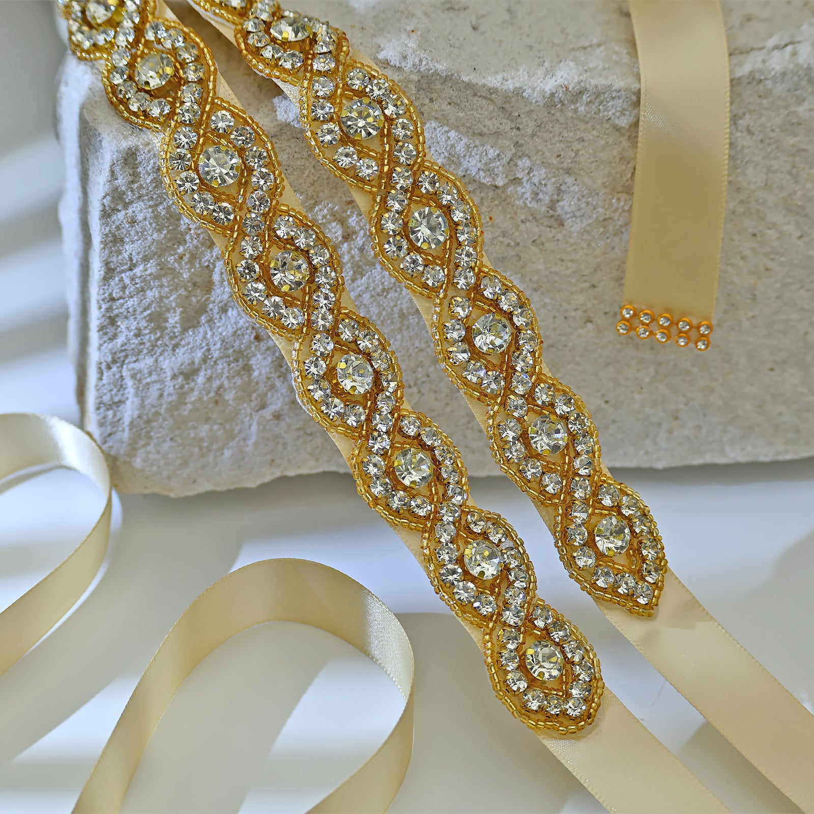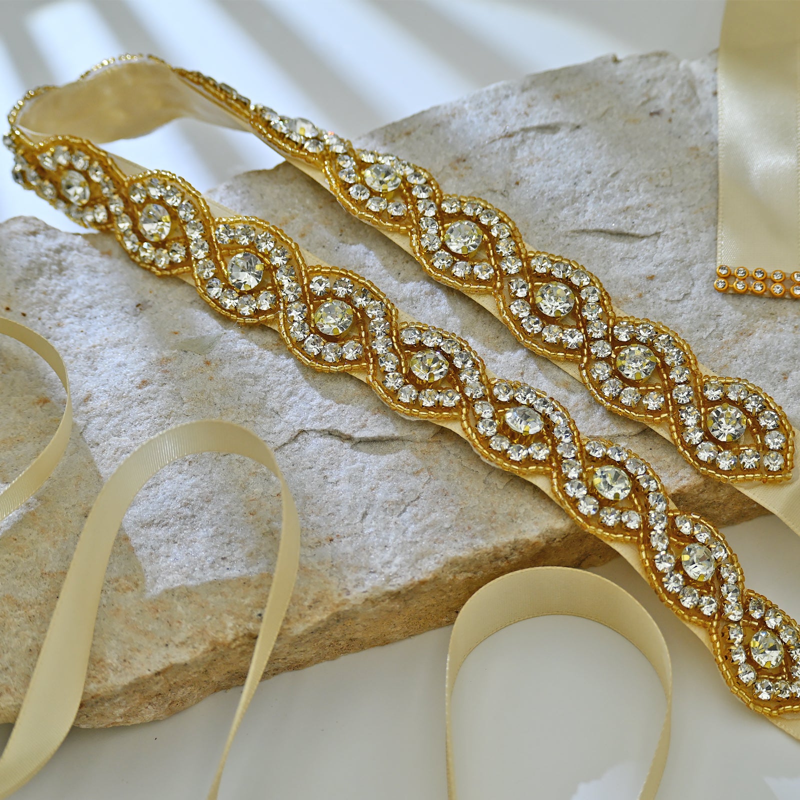 Elevate your look with this champagne rhinestone belt, perfect for weddings, proms, and special occasions.