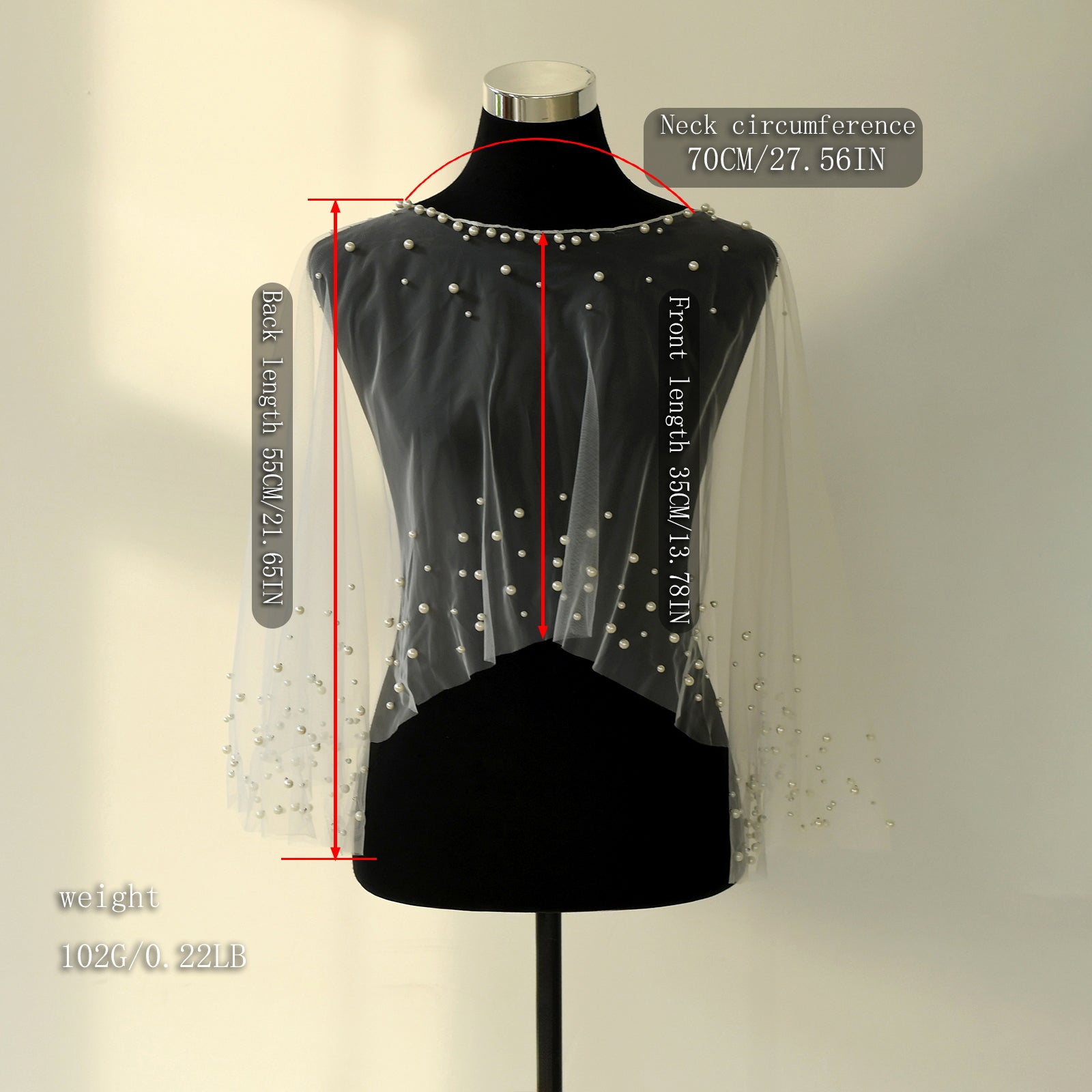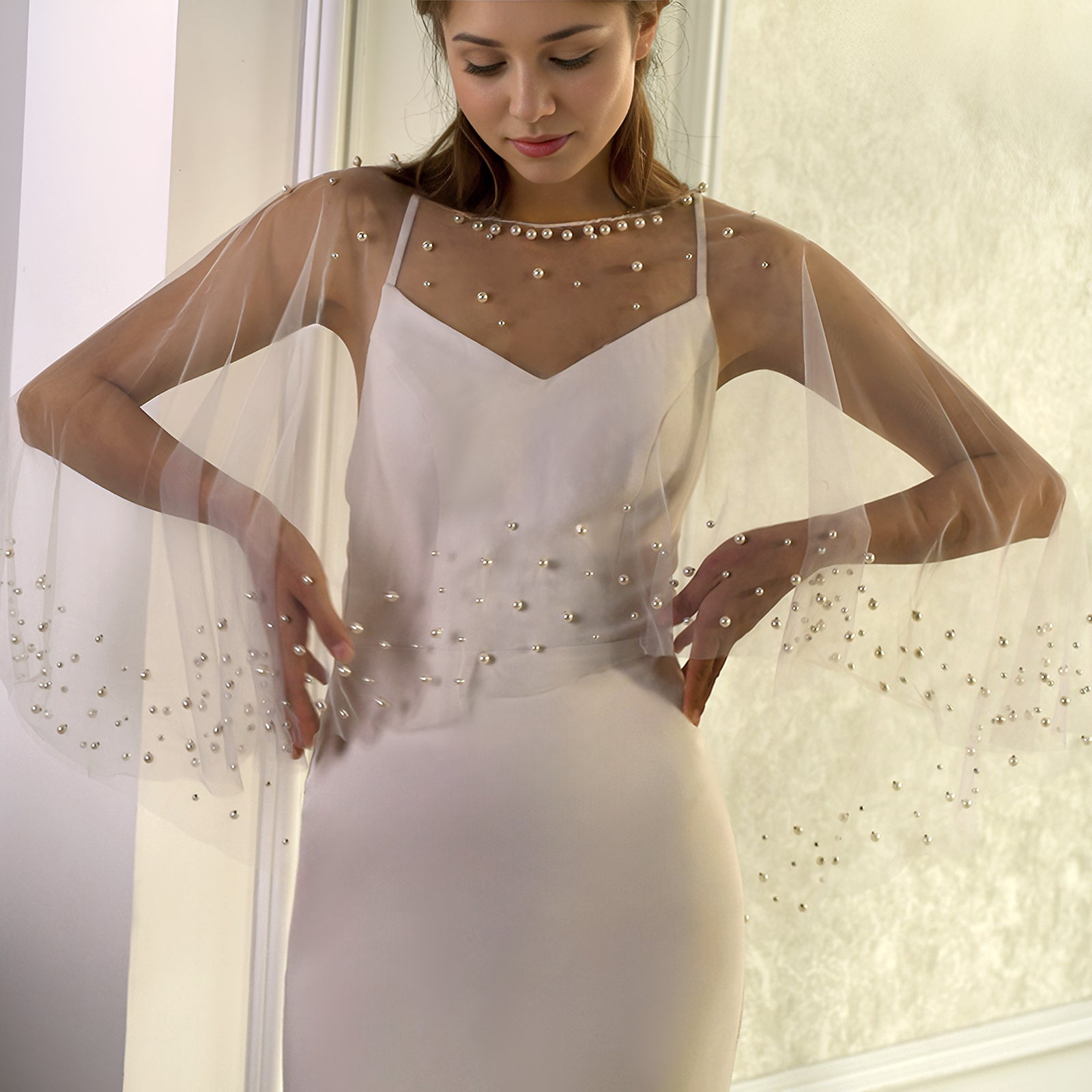 BRIDELLA BMG36 Pearl Embellished Bridal Shawl Wedding Accessories Women's Small Shoulder Coverings Arms Are Suitable For Dress Matching