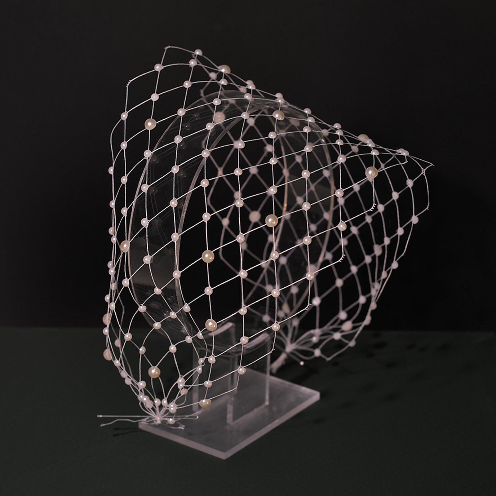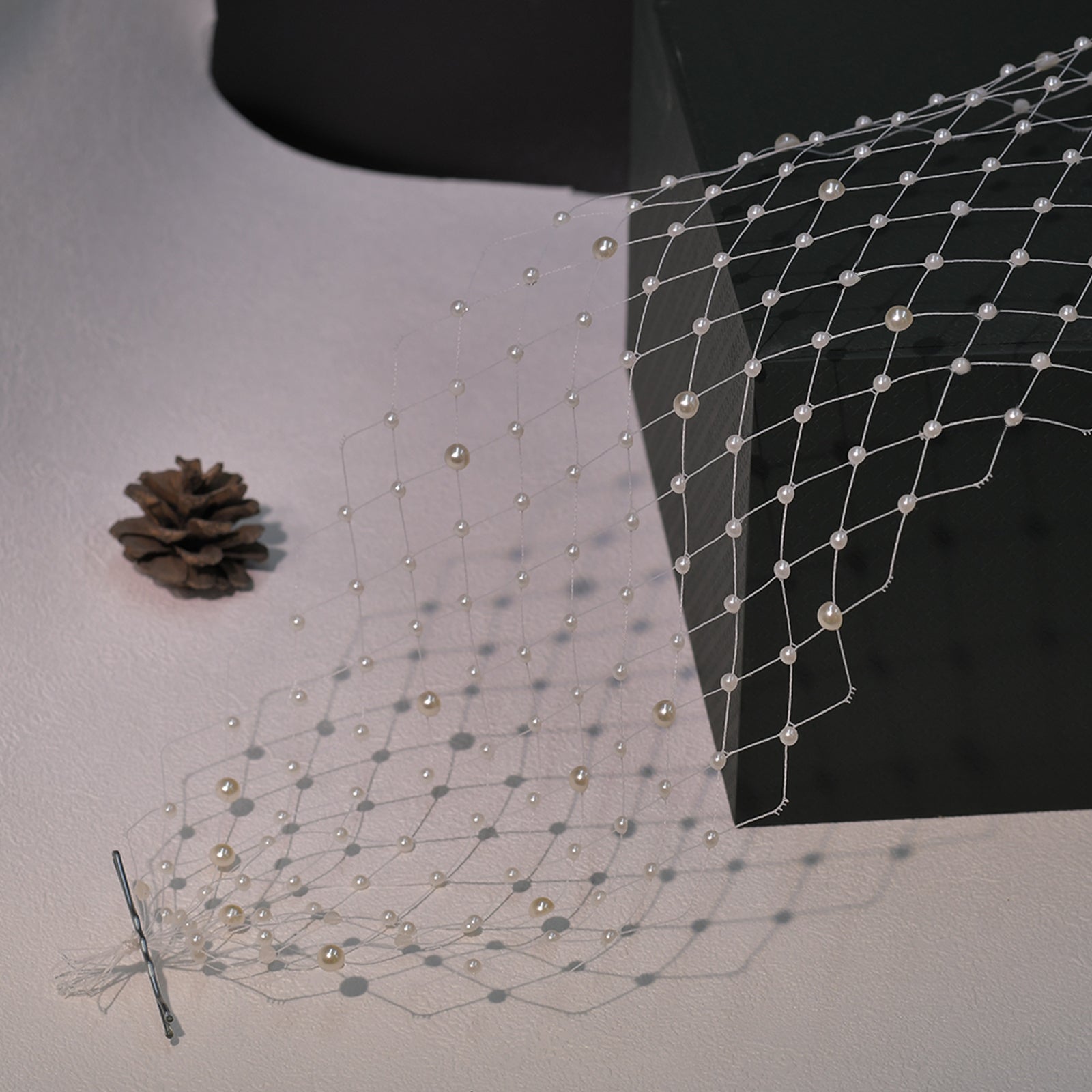 BRIDELLA BMA52 Pearl Embellished Bridal Tiara Wedding Accessories White Mesh Lady Bird Cage Veil Banquet Festival