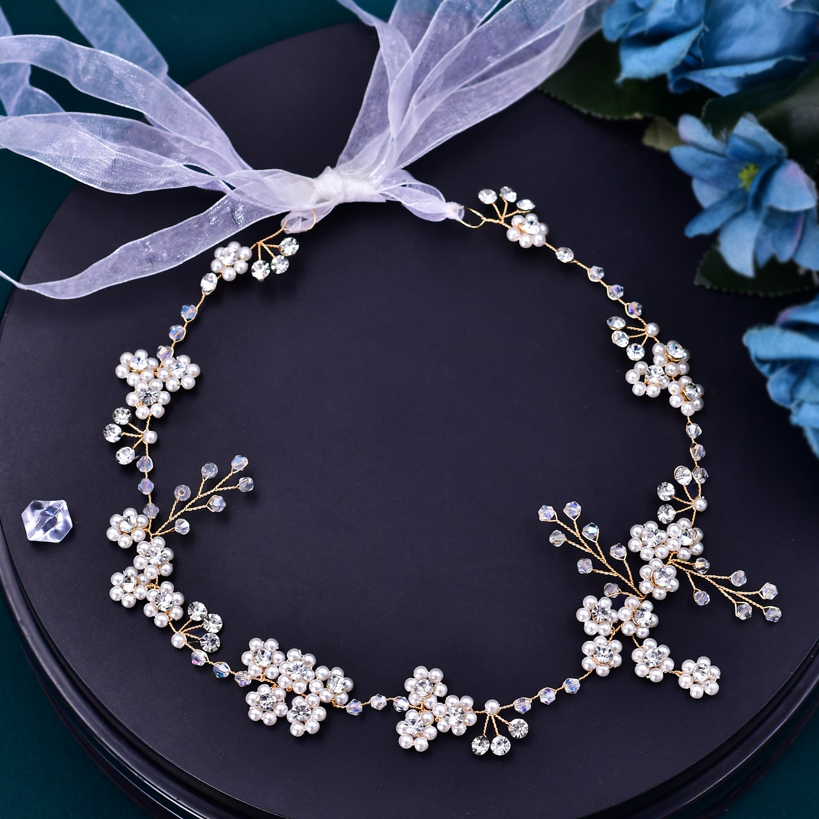 BRIDELLA BHP129 Pearl Headband for Woman Wedding Headpiece Handmade Bridal Hair Piece Wedding Hair Accessories Bride Headdress