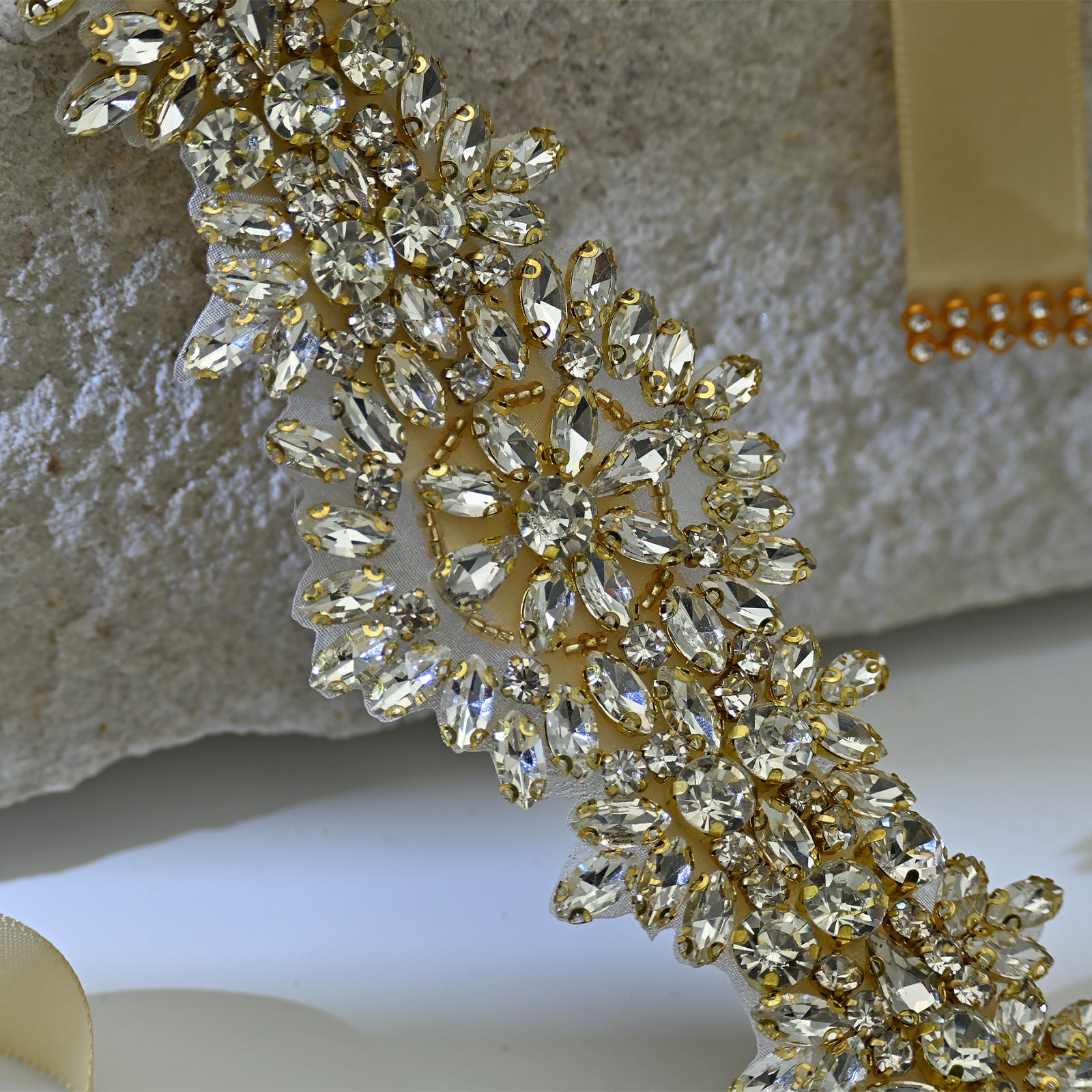Elevate your look with this champagne rhinestone belt, perfect for weddings, proms, and special occasions.