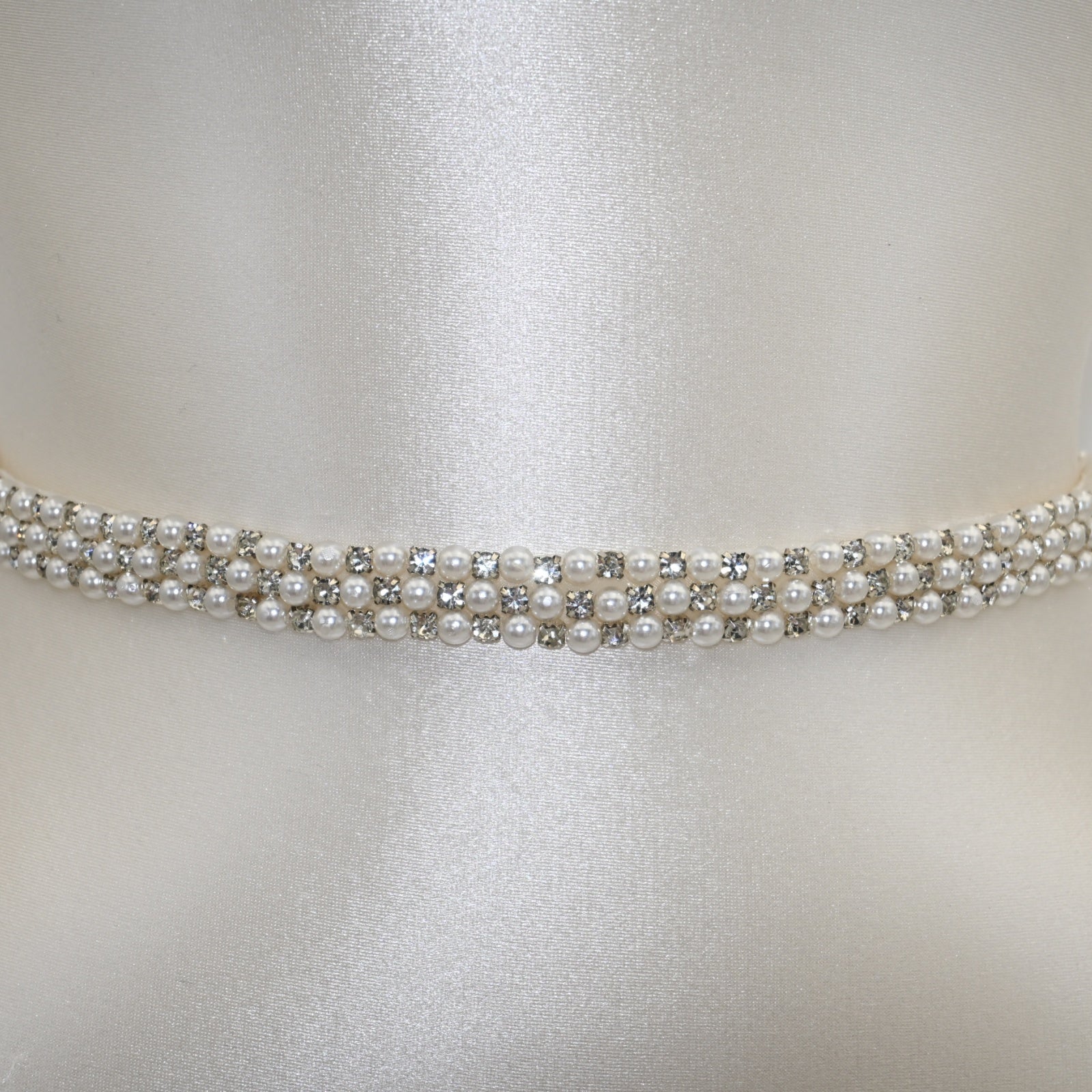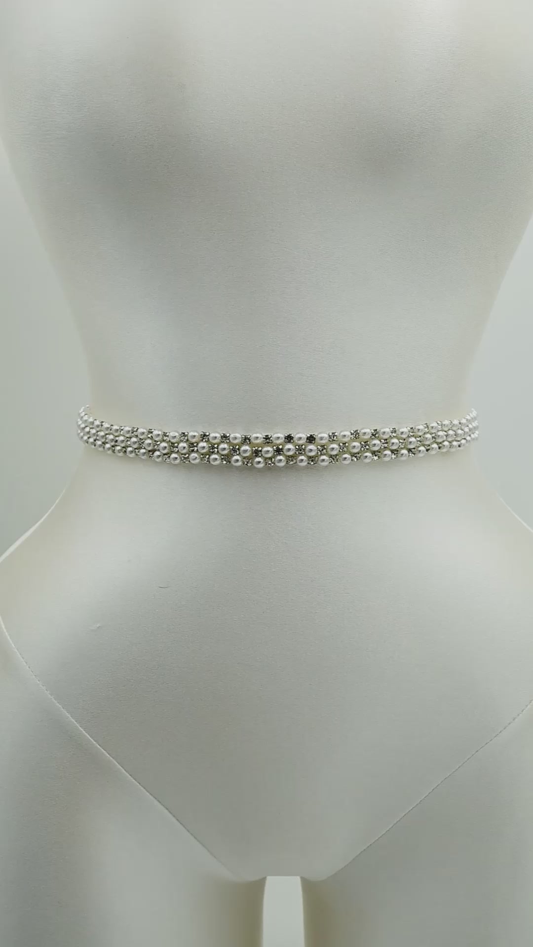 Bridella BS134 Off White Rhinestone & Pearl Belt