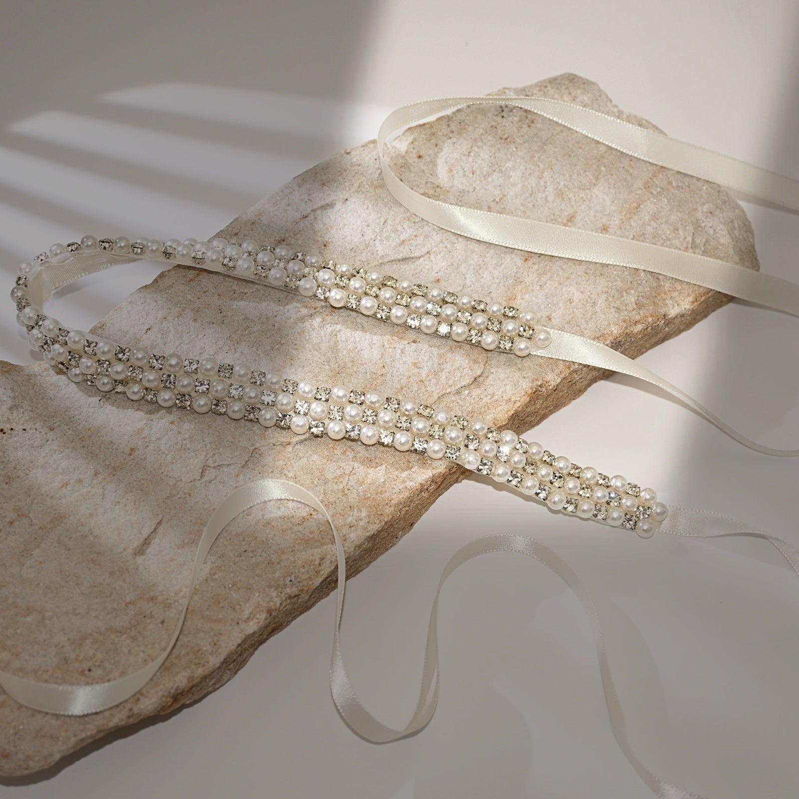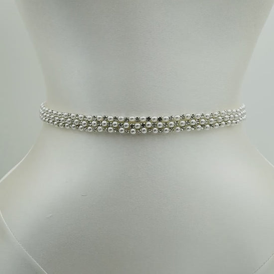 Elevate your look with this off white rhinestone and pearl belt, perfect for weddings, proms, and special occasions.
