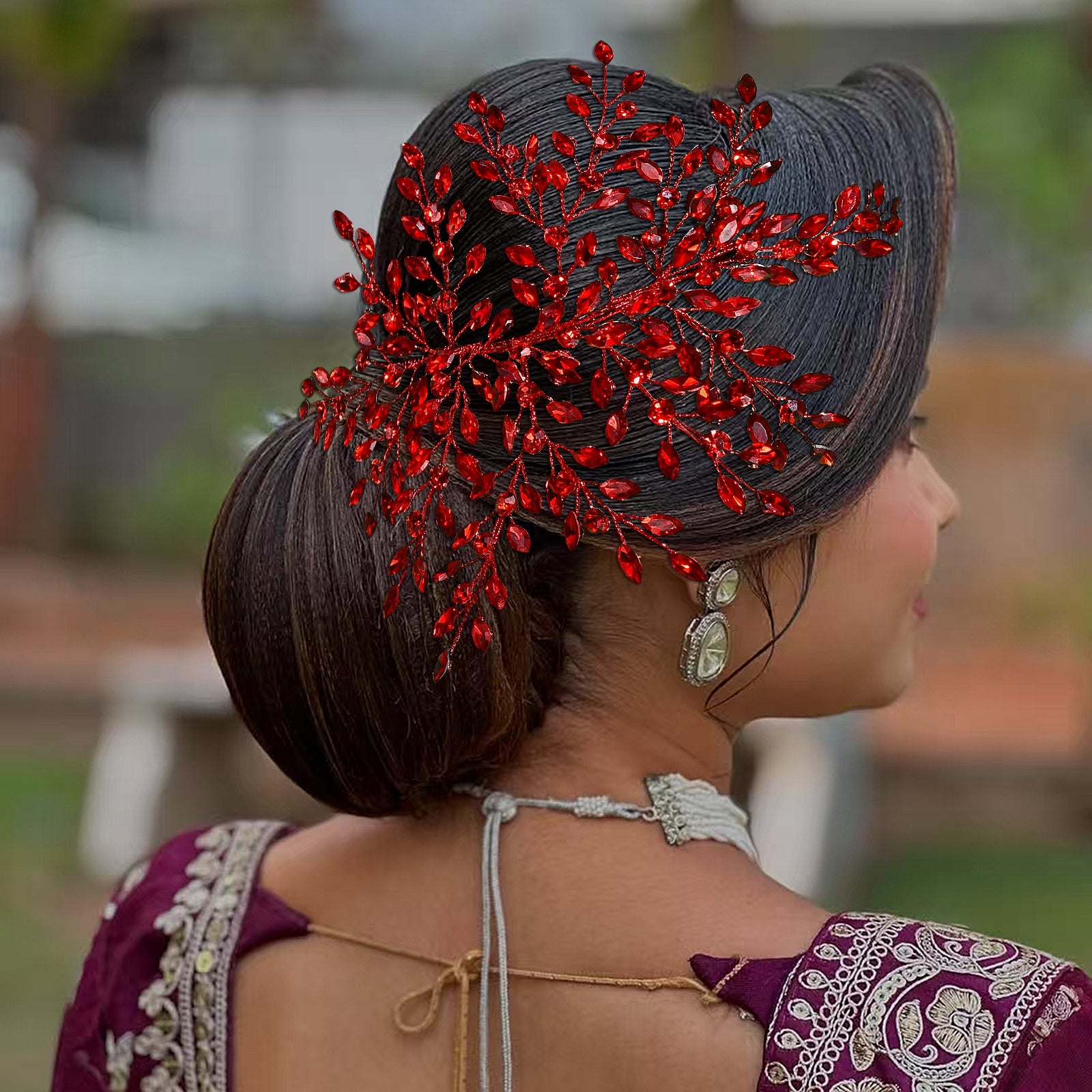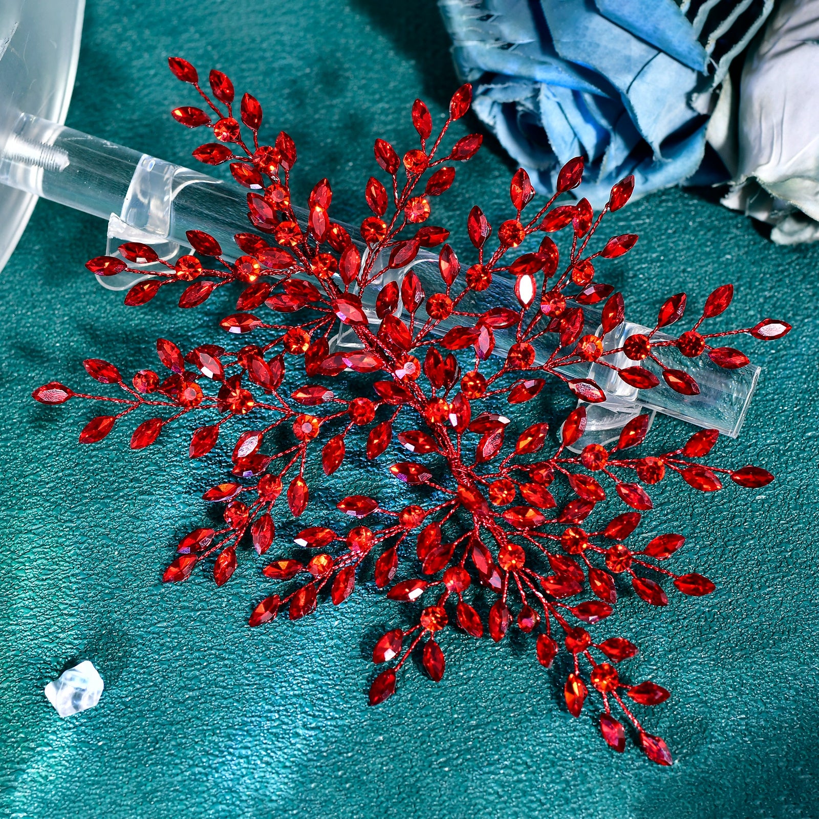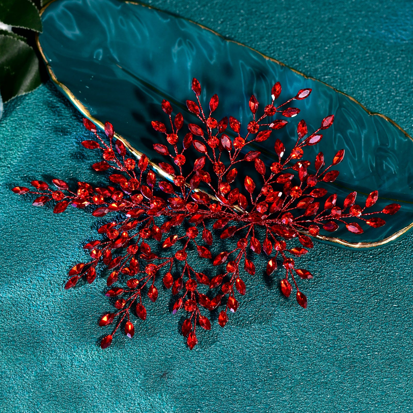 BRIDELLA BHP853 Red Trendy Rhinestone Bride Headband Green Wedding Tiara Shiny Women Hair Accessories Handmade Banquet Party Holiday Gifts Black