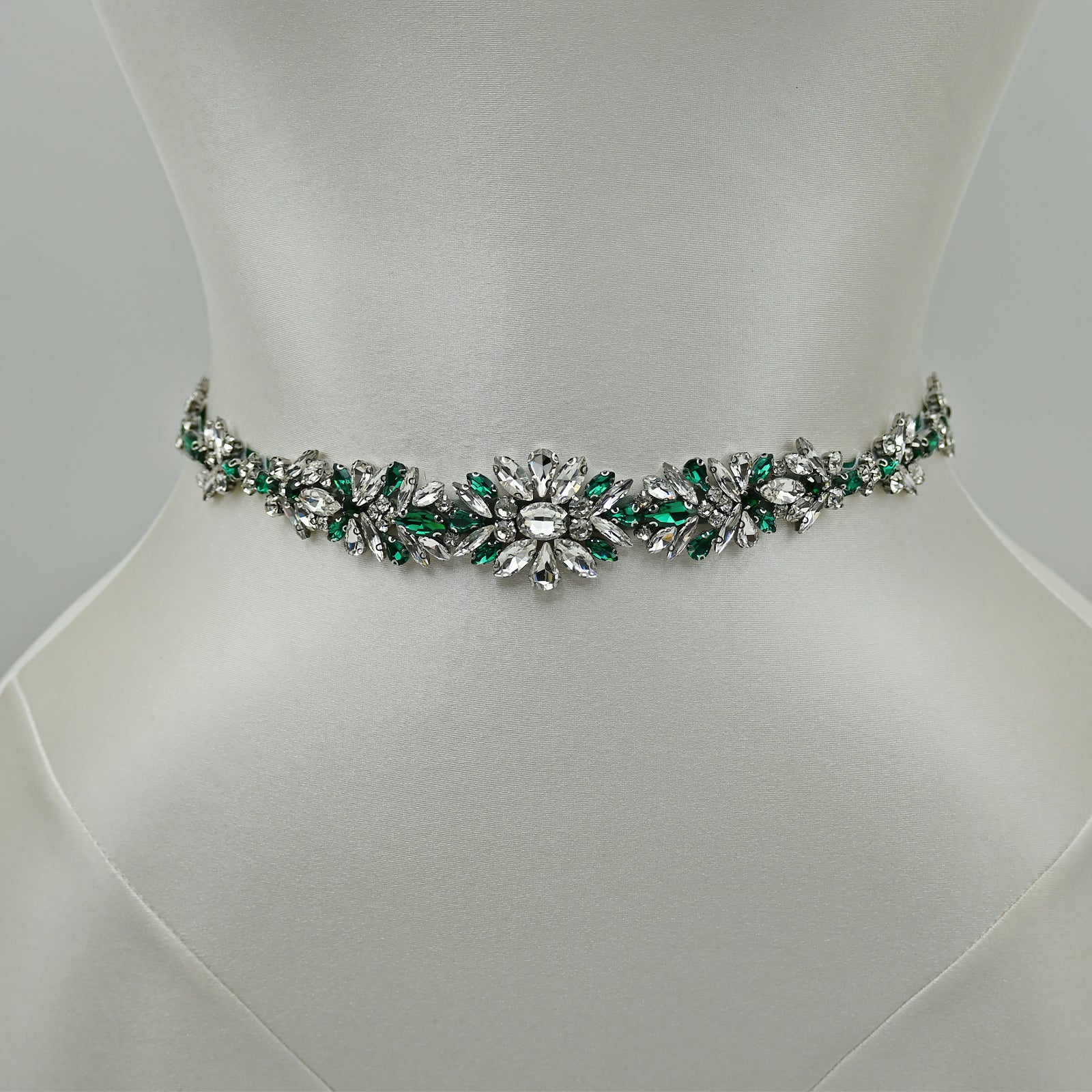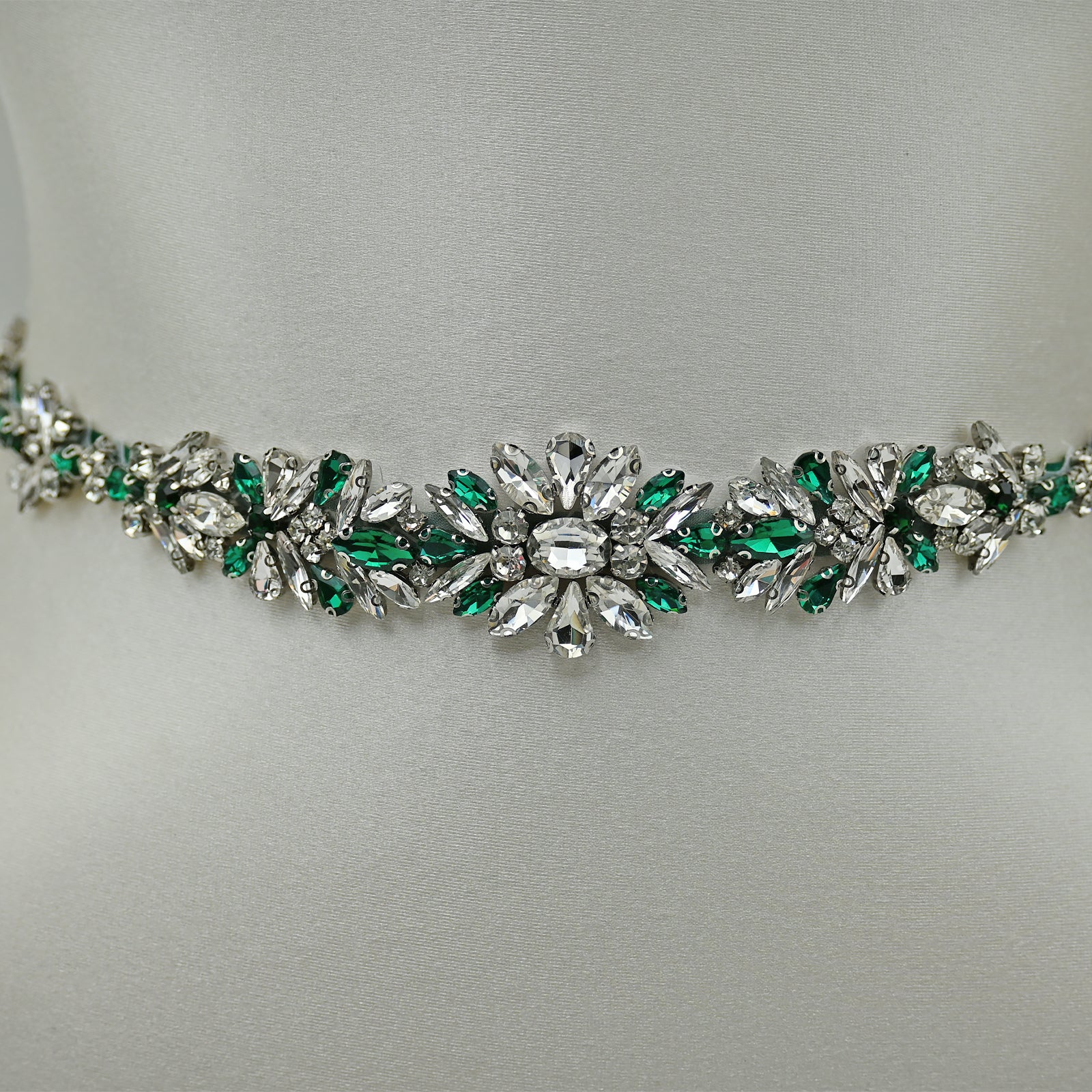Elevate your look with this green rhinestone belt, perfect for weddings, proms, and special occasions.