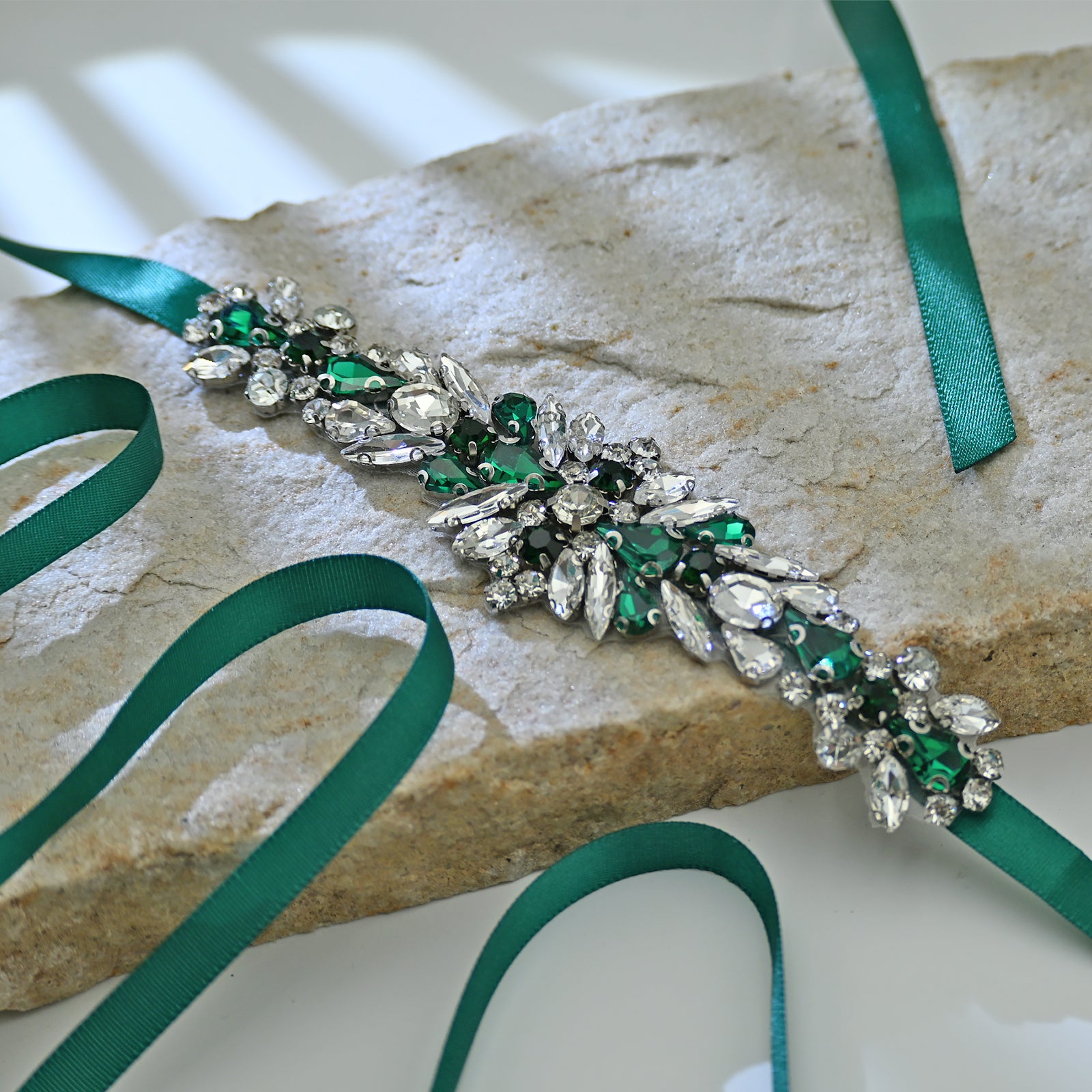 Elevate your look with this green rhinestone belt, perfect for weddings, proms, and special occasions.