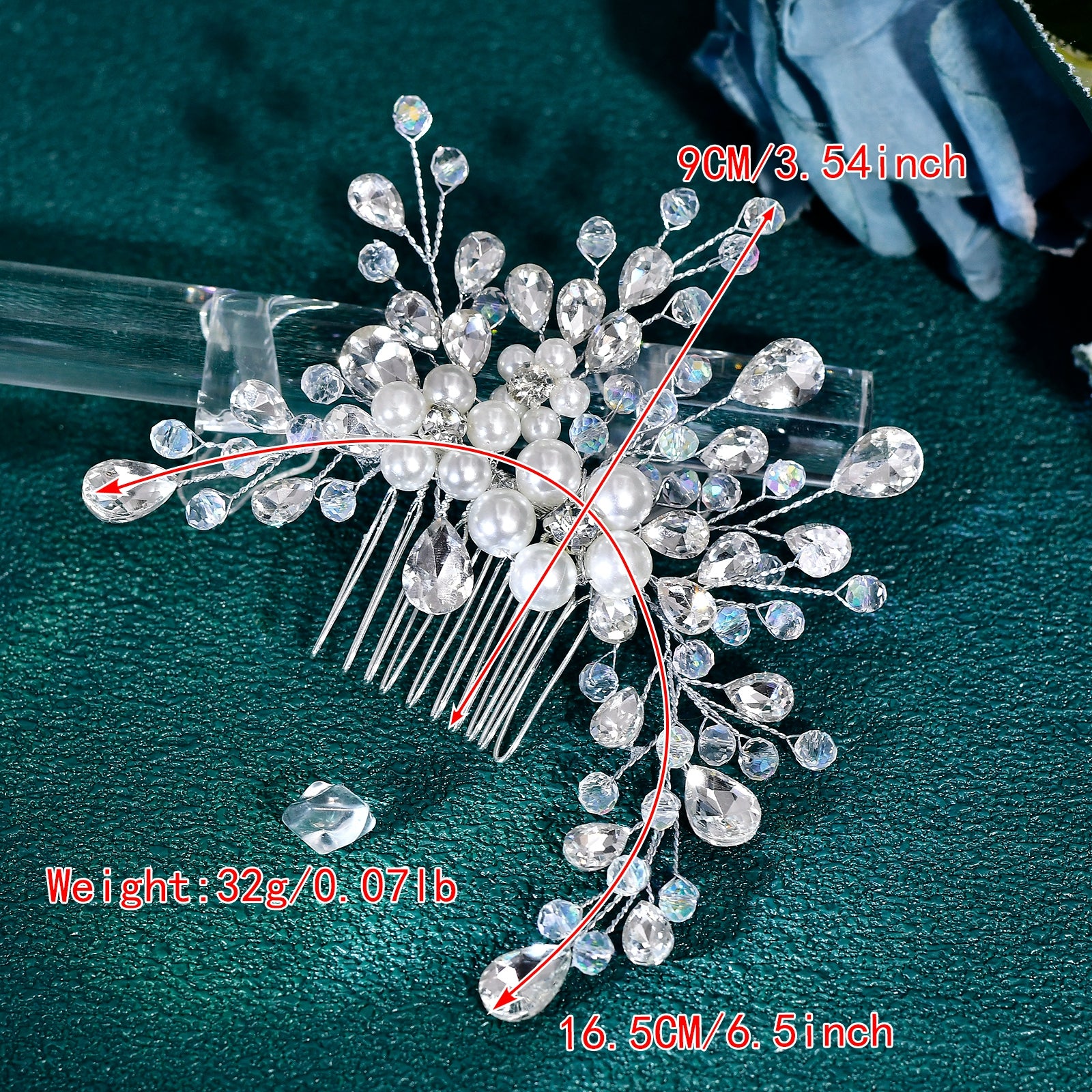 BRIDELLA BHP850 Rhinestone Hair Comb Handmade Wedding Hair Accessories Bride Pearl Headdress Bridesmaid Crystal Headwear