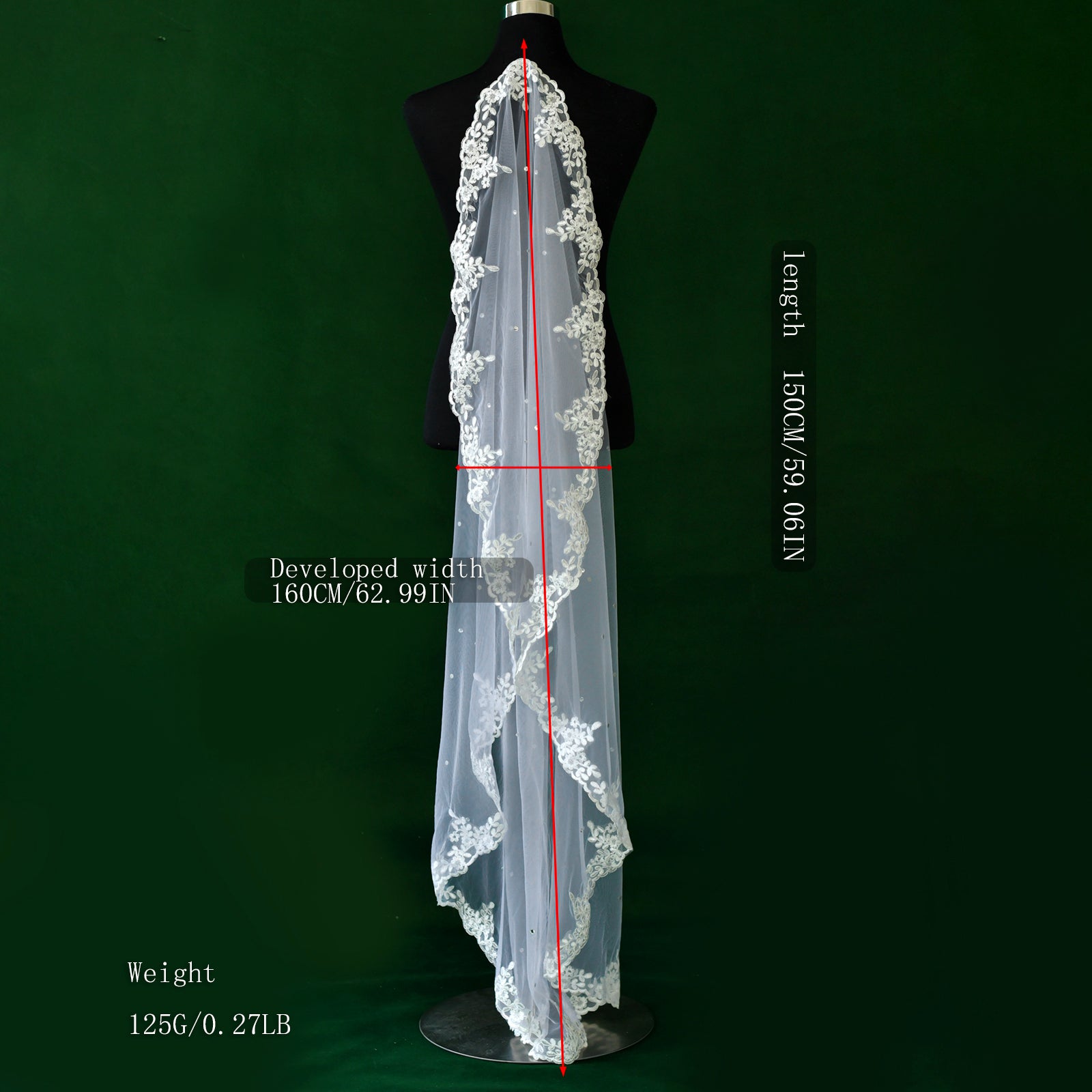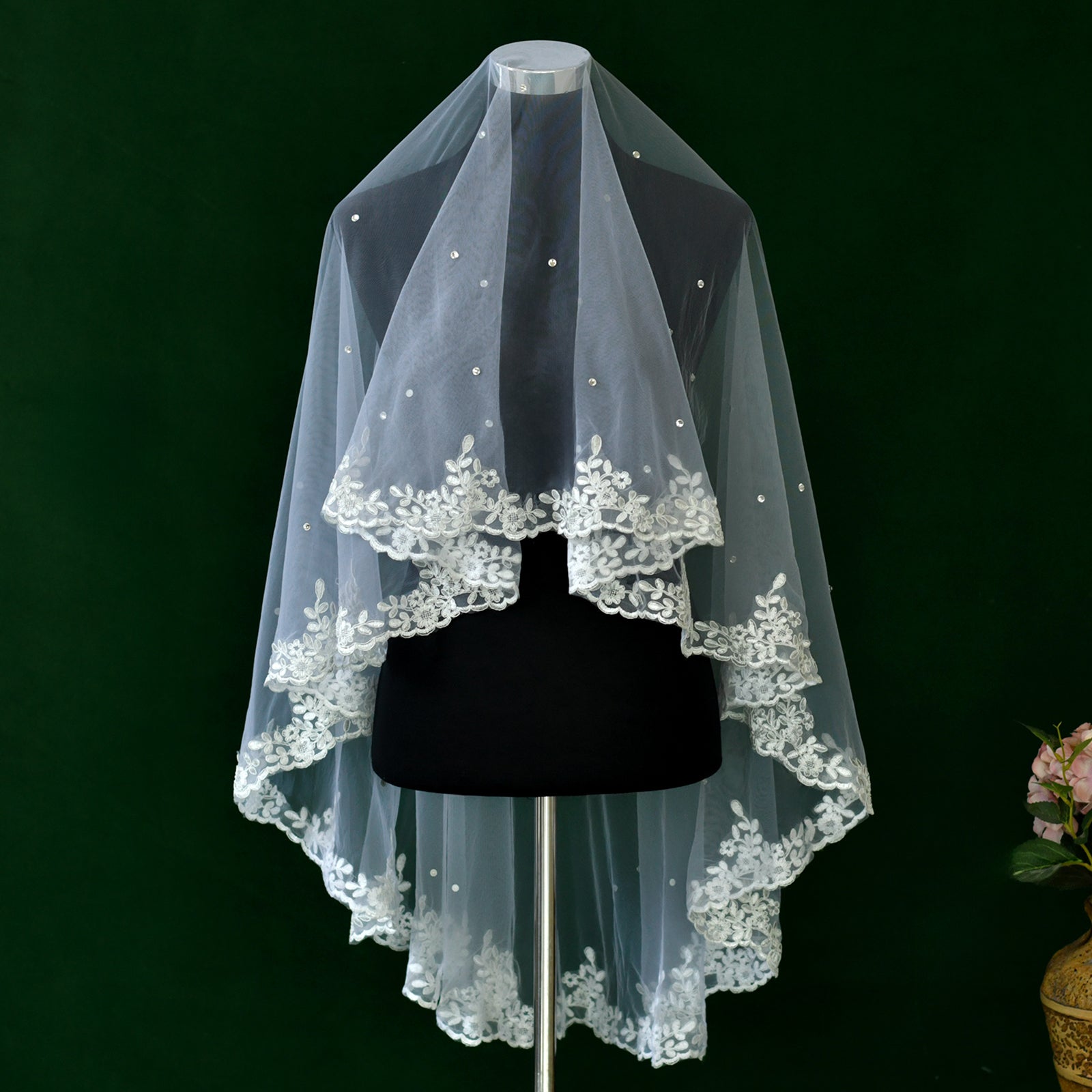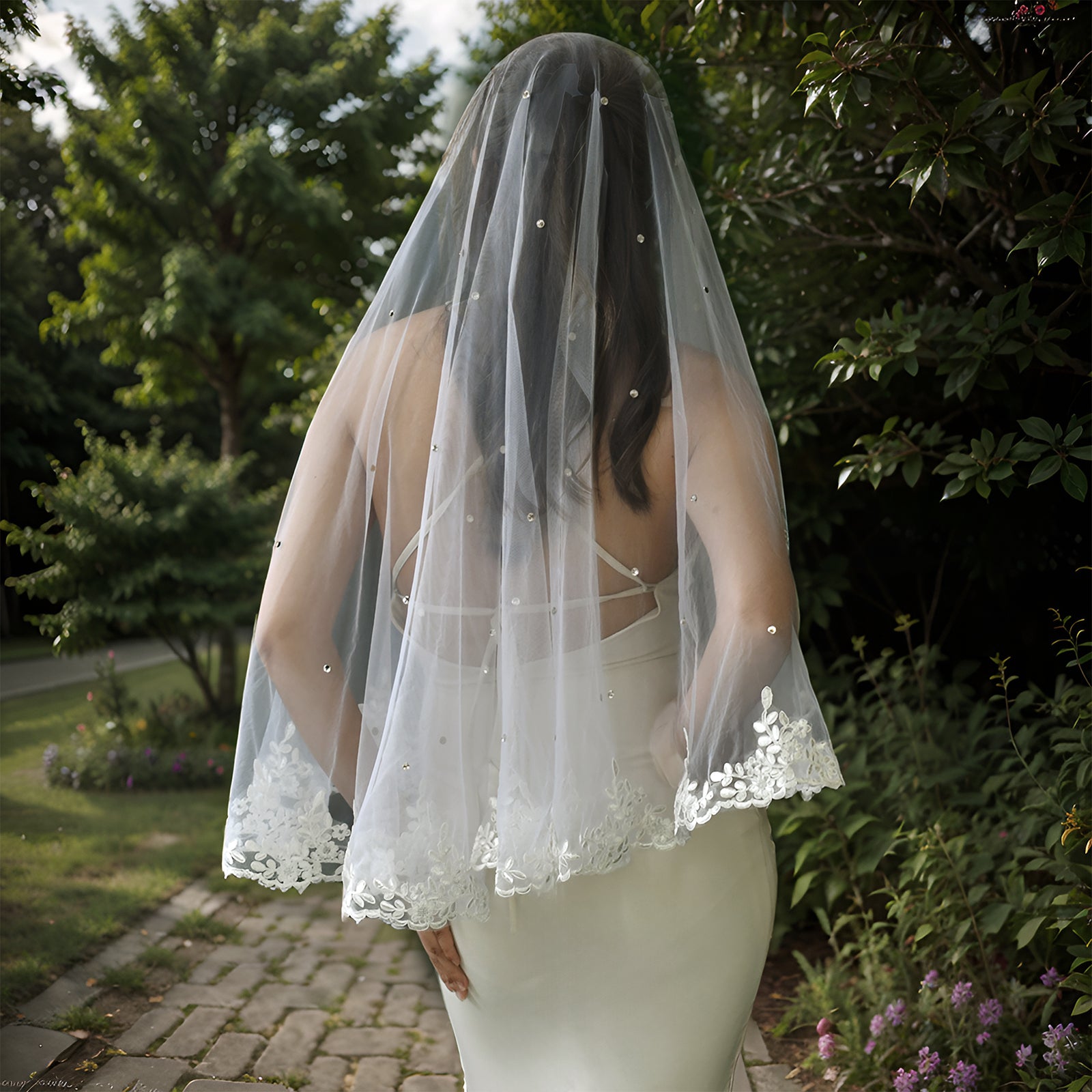 BRIDELLA BM37 Romantic White Lace With Pearl Single-Layer Veil Wedding Accessory Hairless Comb Available For Customization