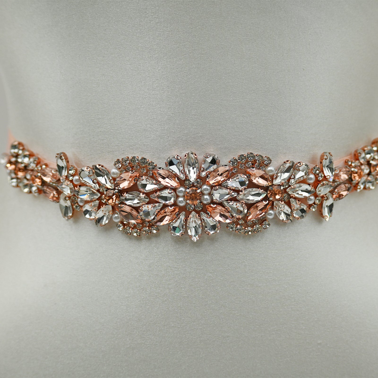 Elevate your look with this rose gold rhinestone belt, perfect for weddings, proms, and special occasions.