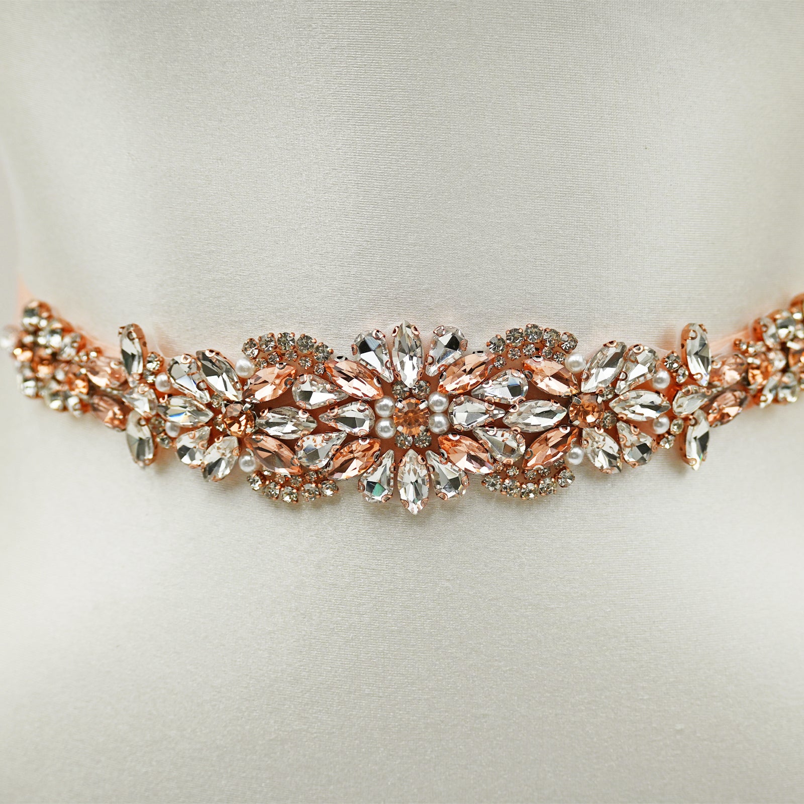 Elevate your look with this rose gold rhinestone bridal belt, perfect for weddings, proms, and special occasions.