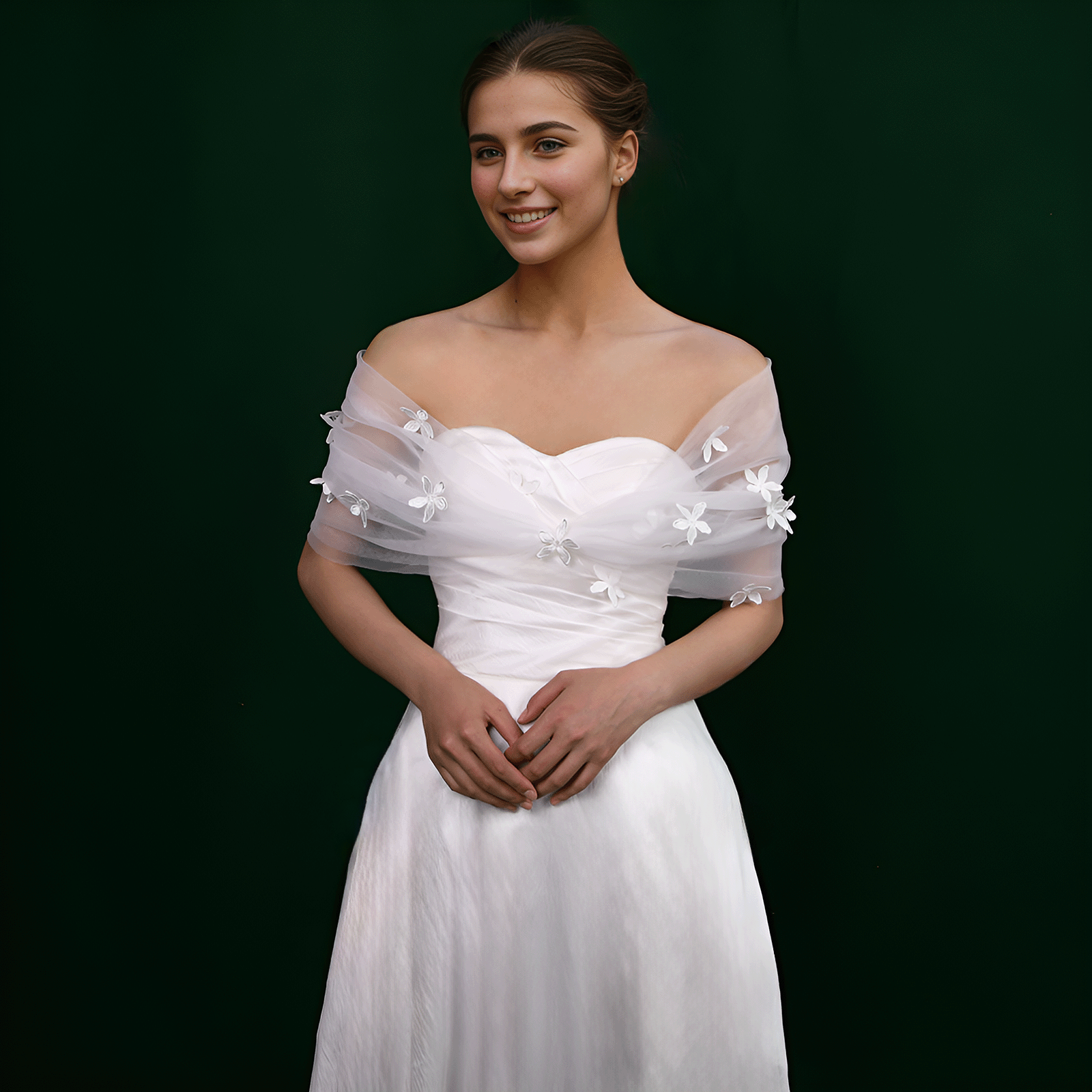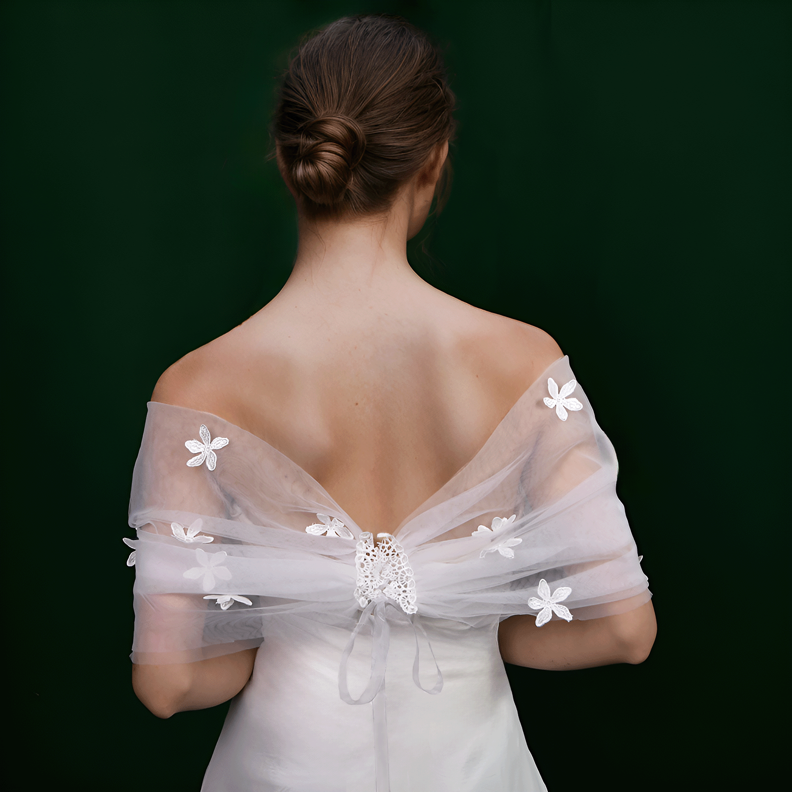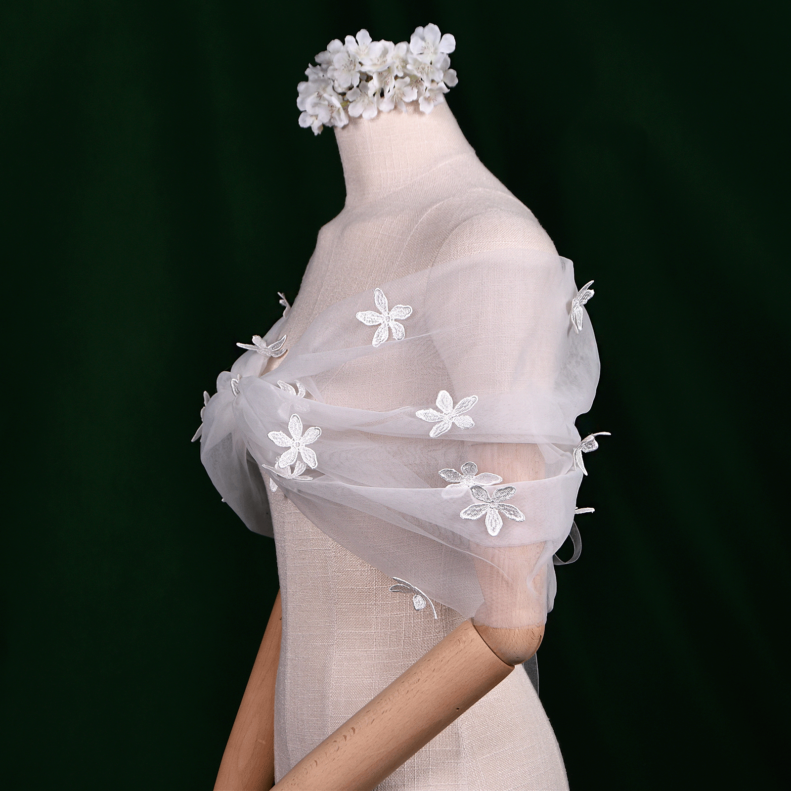 BRIDELLA BMG48 Short 3d Flower Decoration Bridal Shawl Wedding Accessories Ladies Holiday Dinner Dress Detachable Shawl