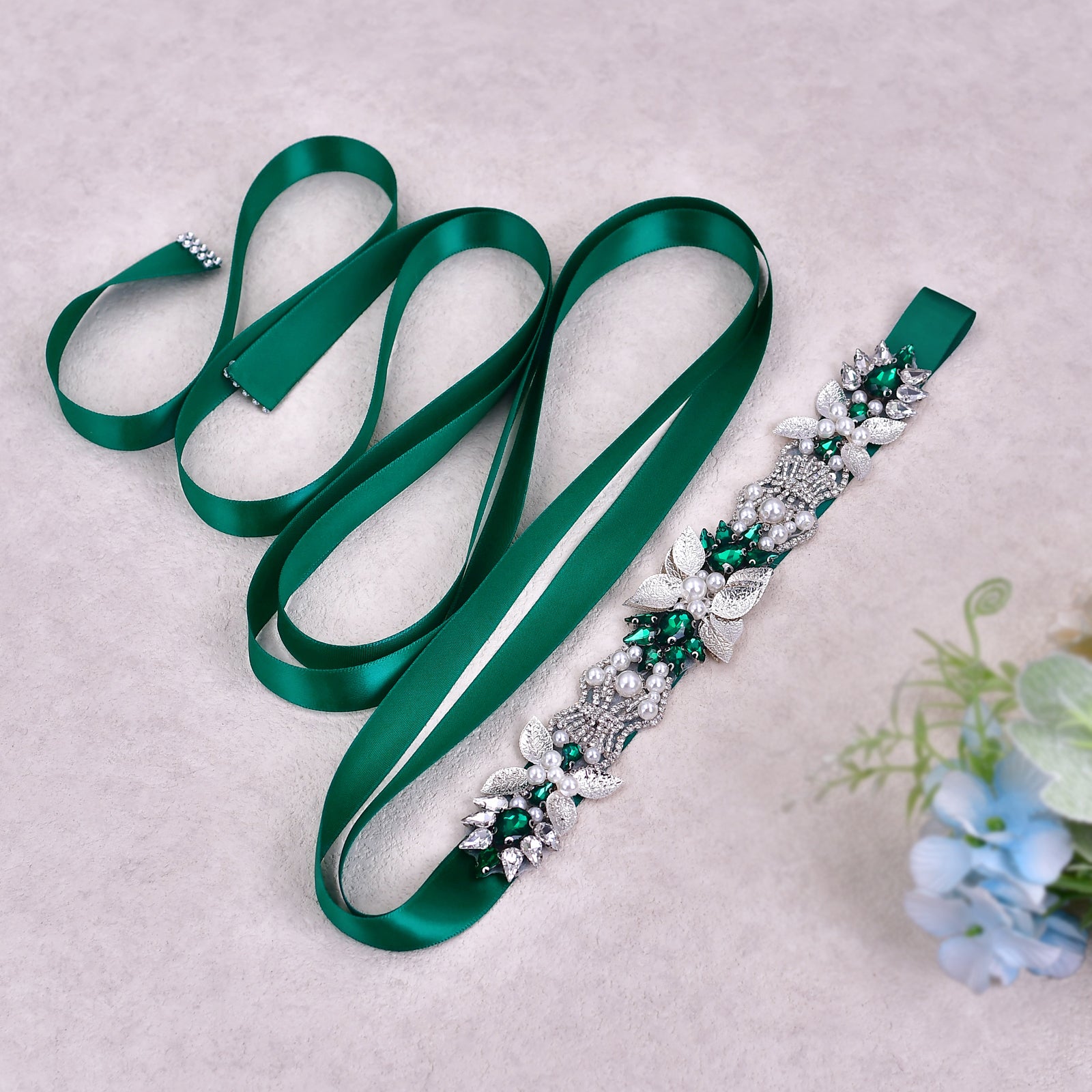 BRIDELLA BS65KL Green Strap Belt Three-Dimensional Alloy Flower Emerald Inlaid Diamond Belt Preferred Party Gif