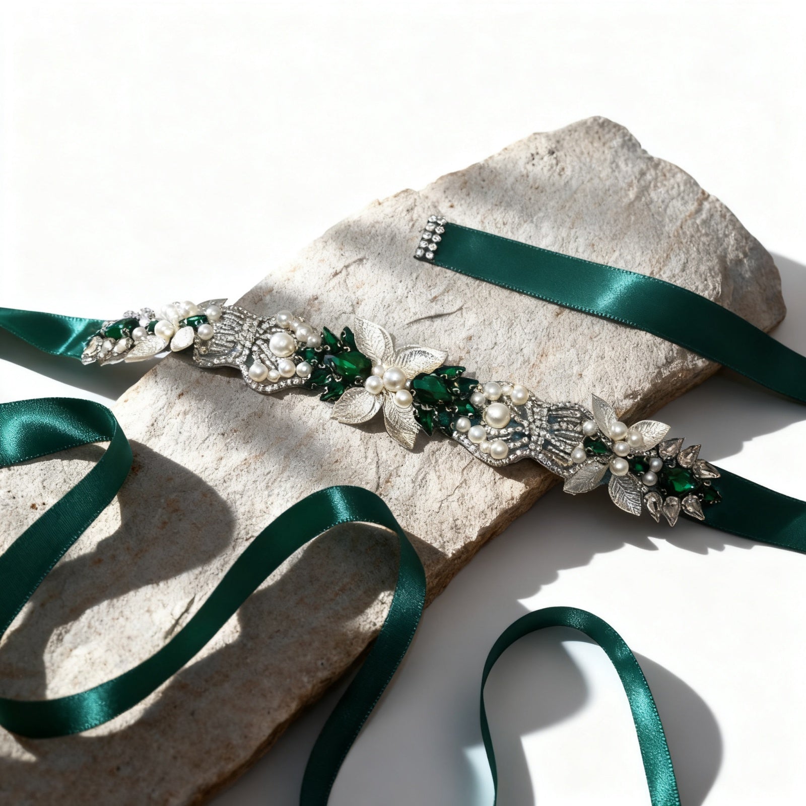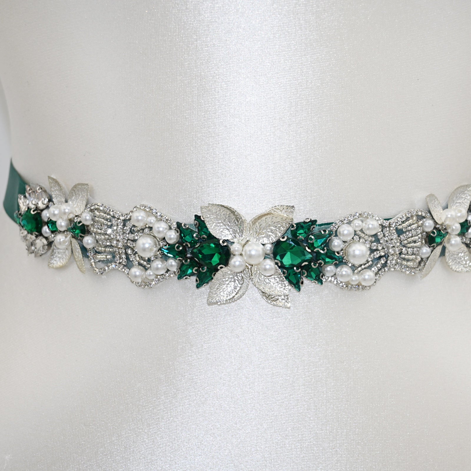 Elevate your look with this green rhinestone belt, perfect for weddings, proms, and special occasions.