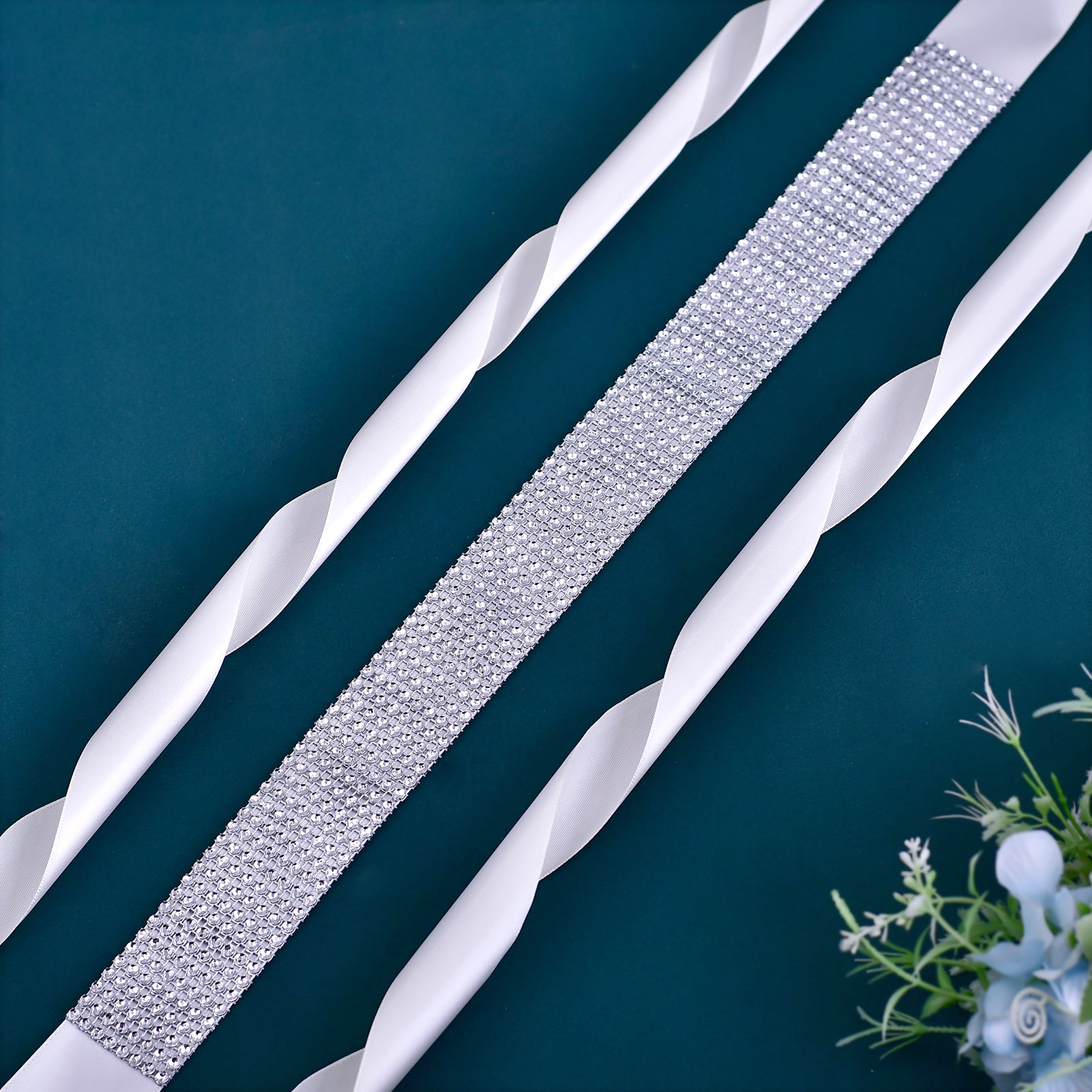 BRIDELLA BS19-4 Simple Dress Belt Silver Sequin Clothing Accessories Off White Strap Waist Belt