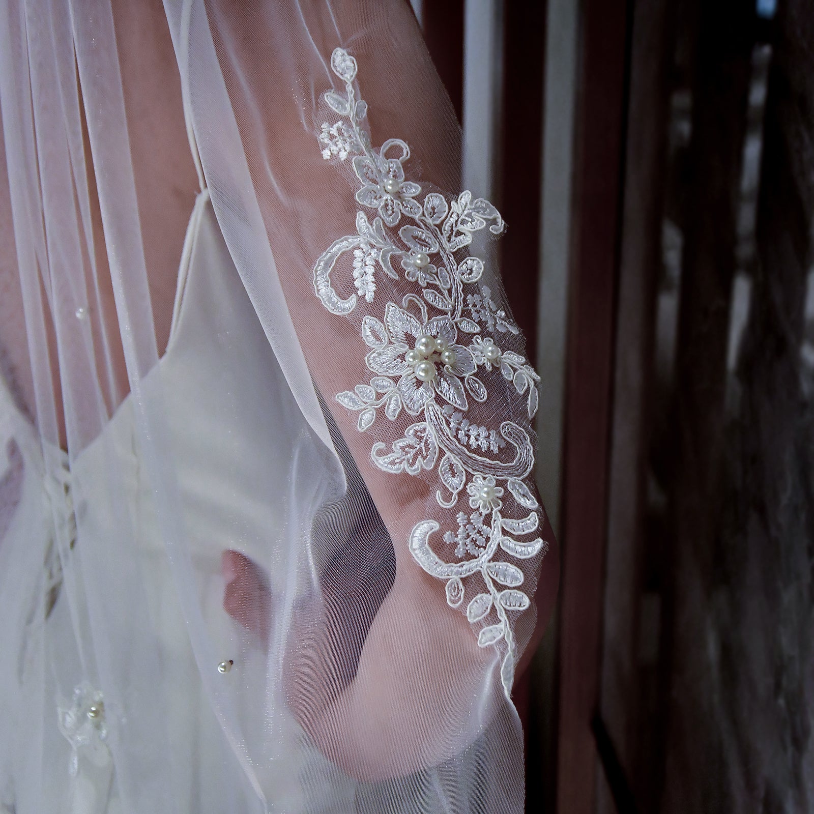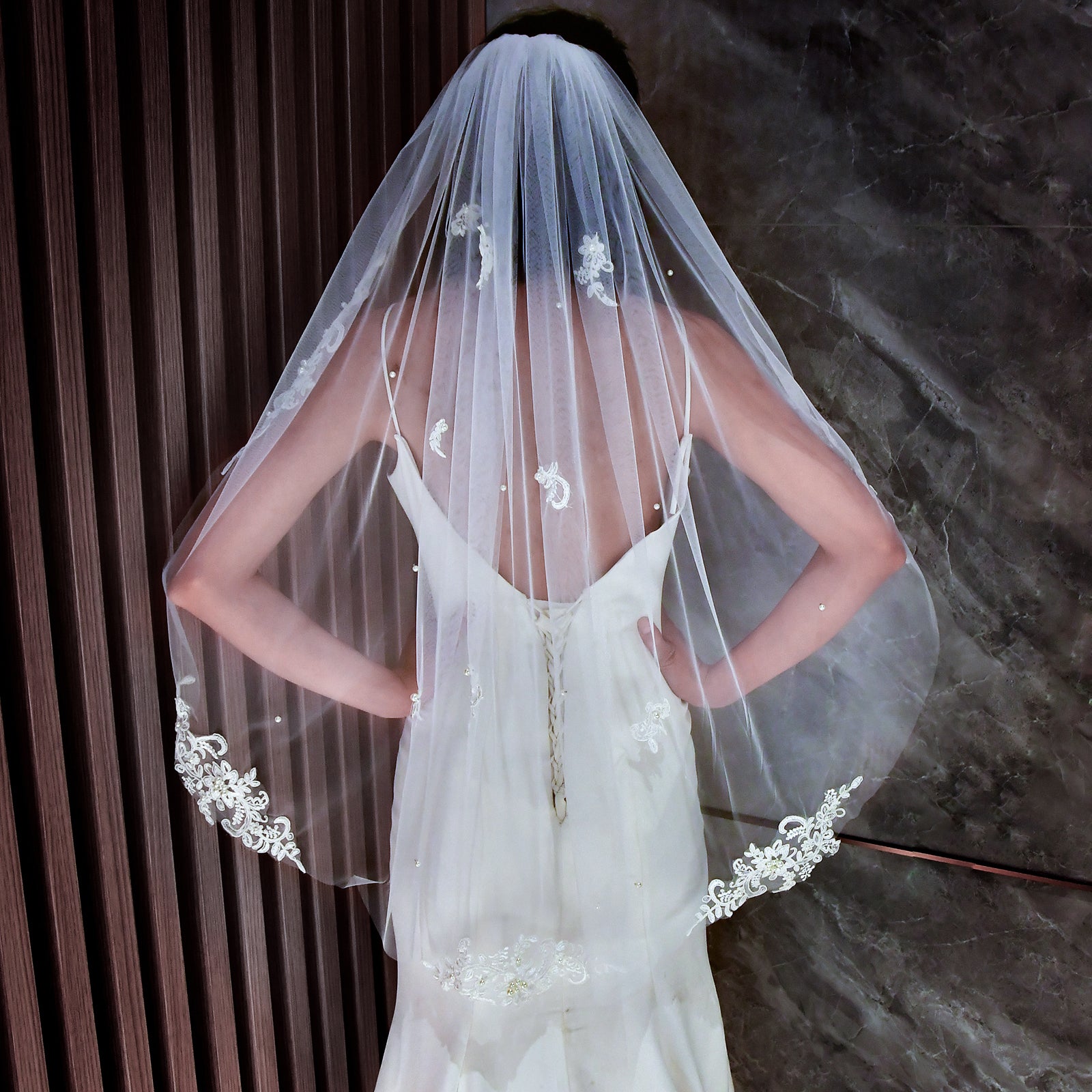 BRIDELLA BM33 Single Layer Short Embroidery Decorated With Hair Comb Bridal Veil