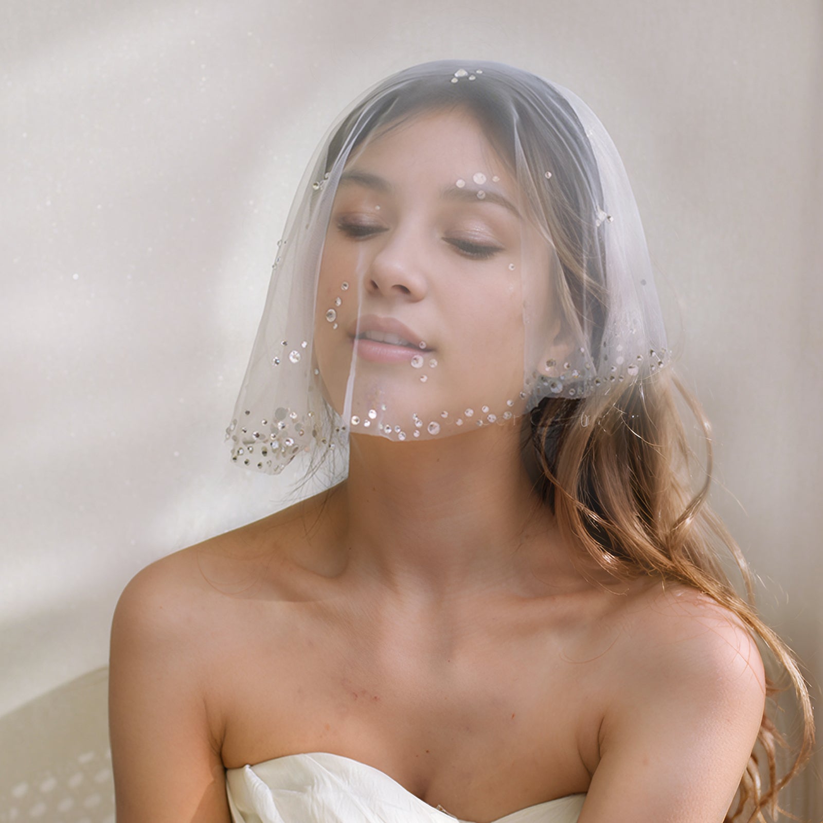 BRIDELLA BMA14 Sparkling Rhinestone Bridal Veil Bachelorette Party Headdress Dress Accessories Face Mask Veil