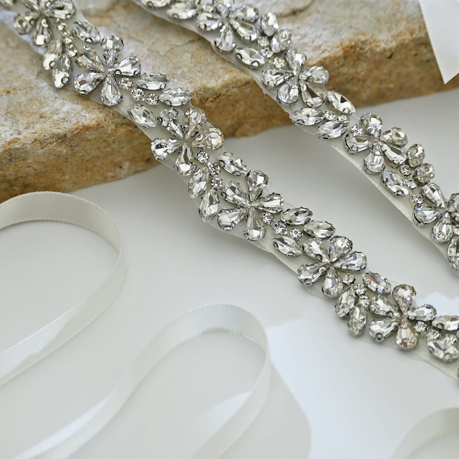 Elevate your look with this off white rhinestone belt, perfect for weddings, proms, and special occasions.
