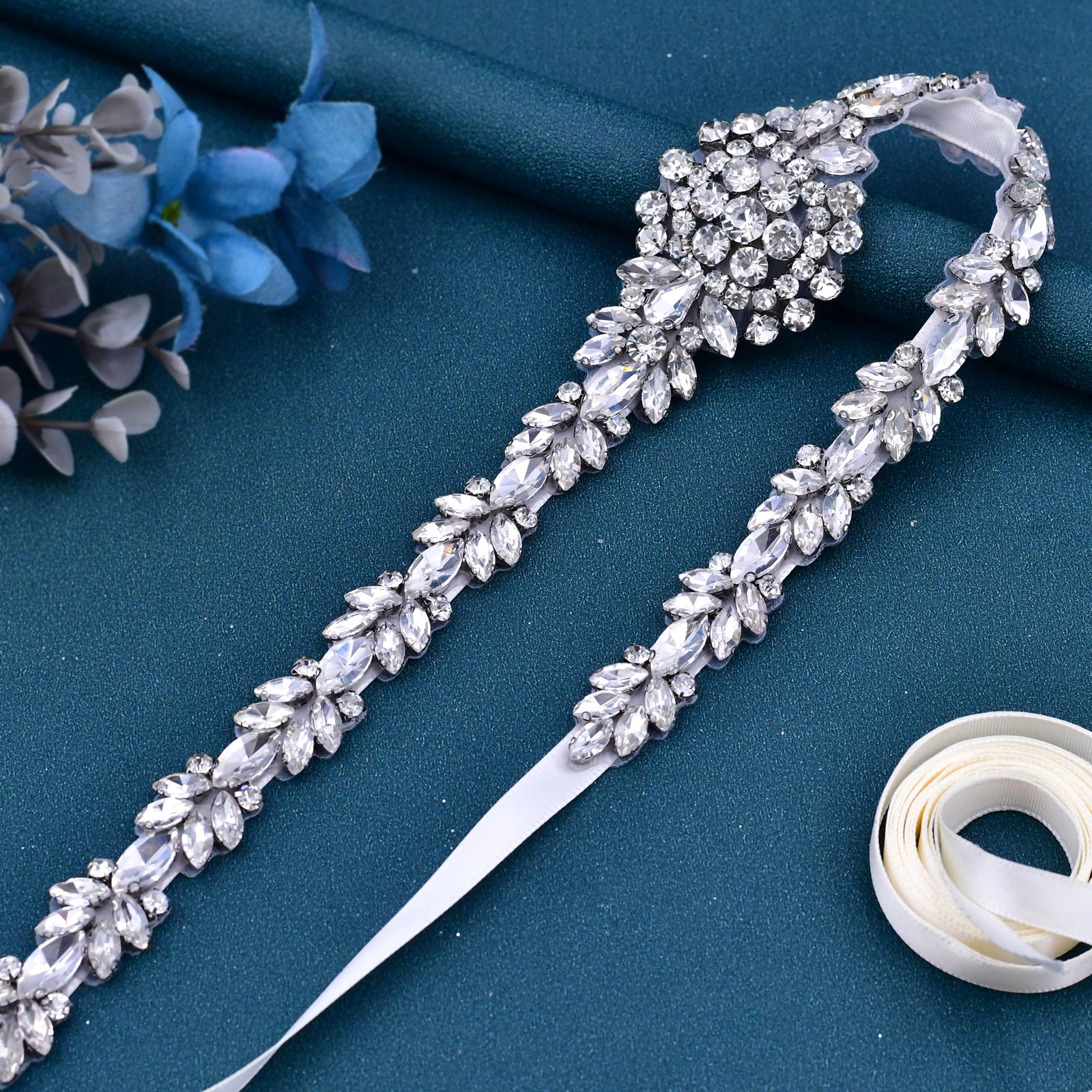 BRIDELLA BS124 Treasure Niche Belt Full Of Spirit Silver Versatile Bride Shiny Slim Waist Seal