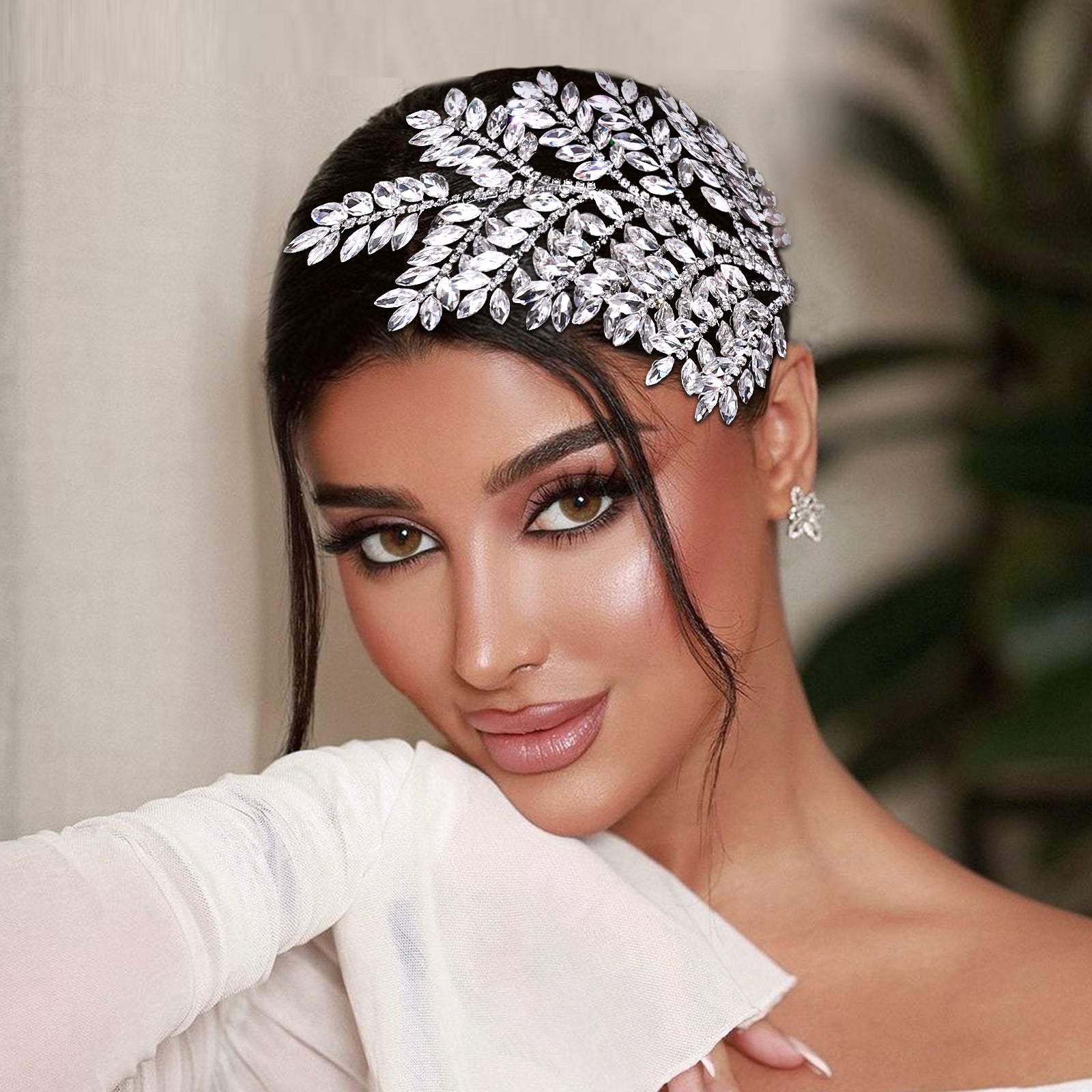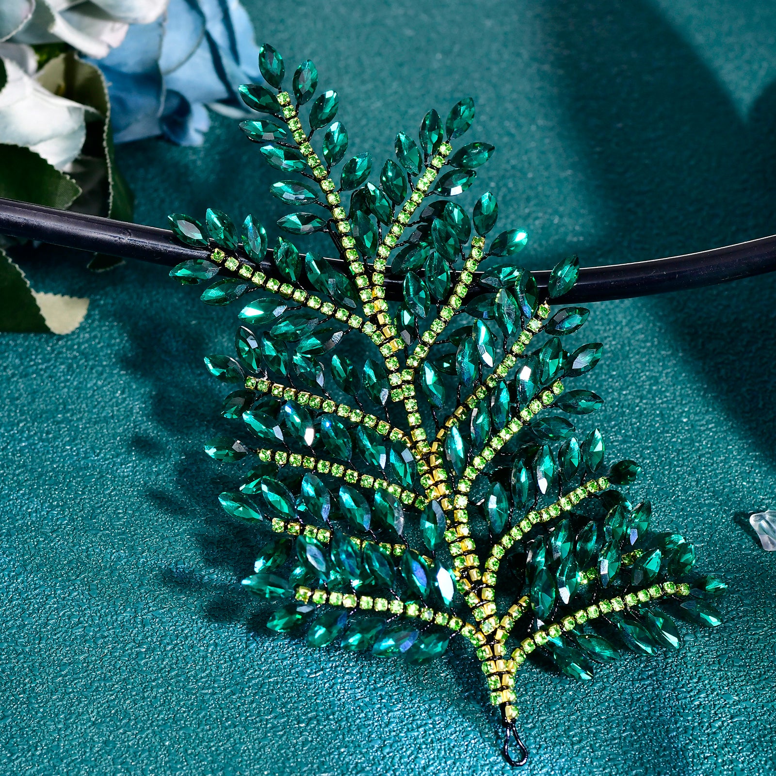 BRIDELLA BHP759 Red Trendy Rhinestone Bride Headband Green Wedding Tiara Shiny Wedding Hair Accessories Ladies Handmade Silvery Tiara Holiday Gifts