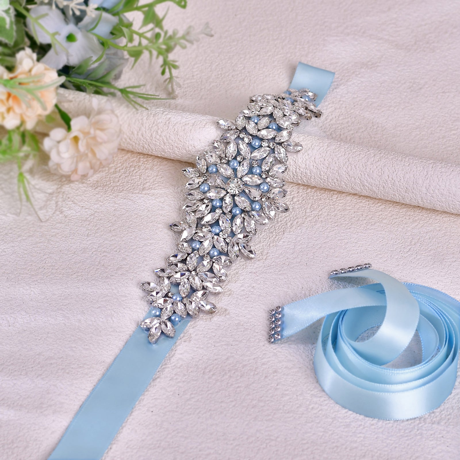 BRIDELLA BS121 Rhinestone Waist Accessory Light Blue Decorative Waistband Brides Companion Gift