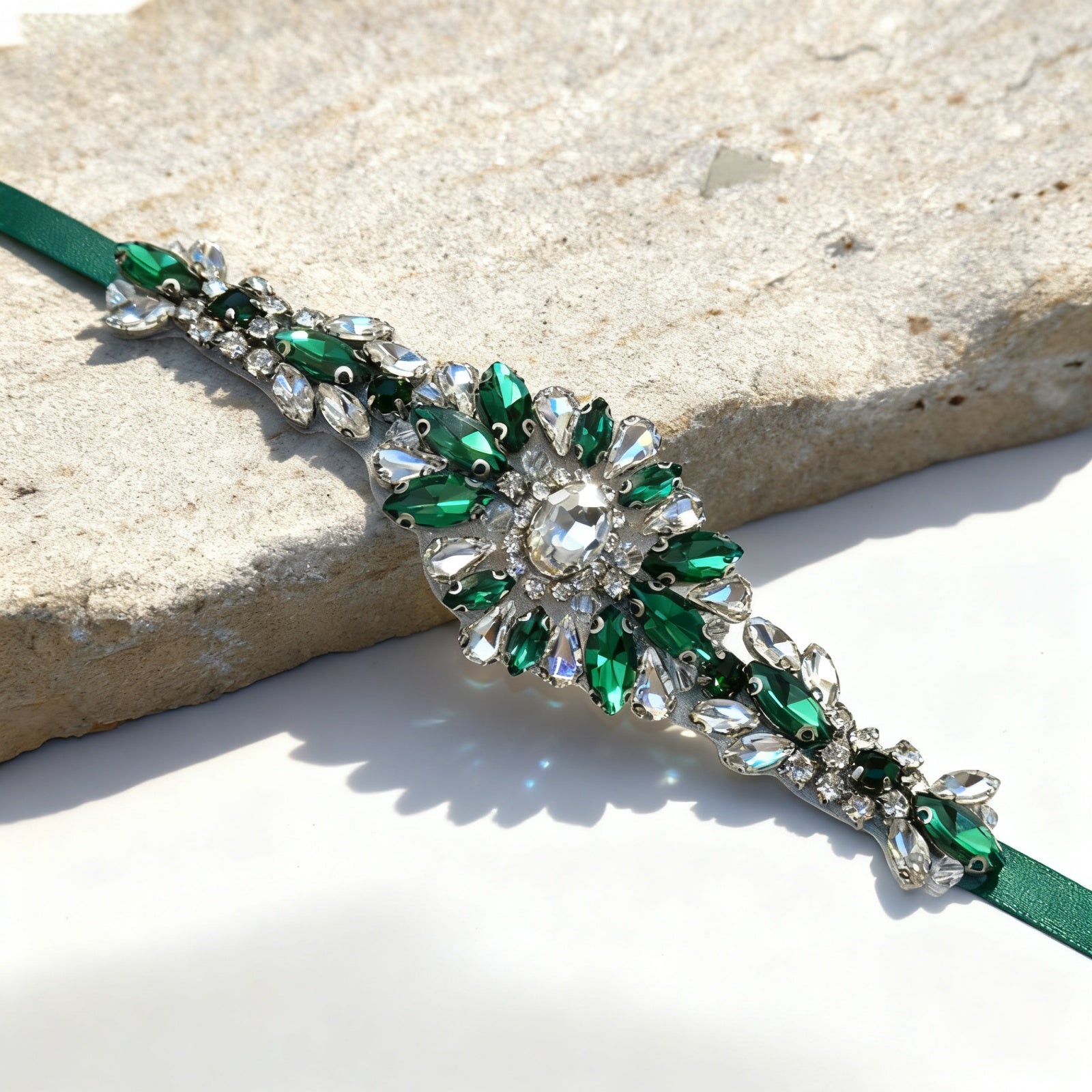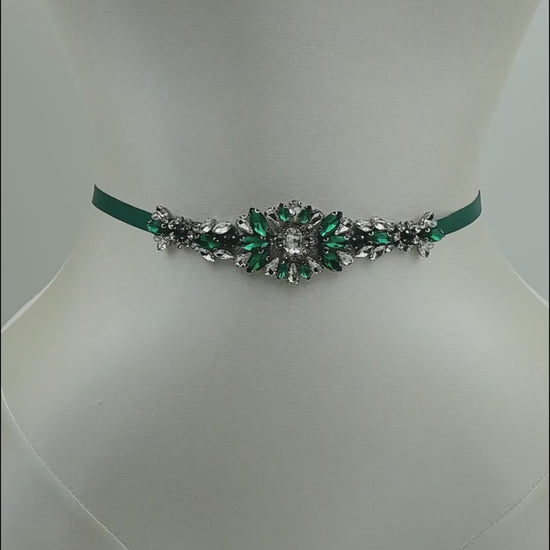 Elevate your look with this green rhinestone belt, perfect for weddings, proms, and special occasions.