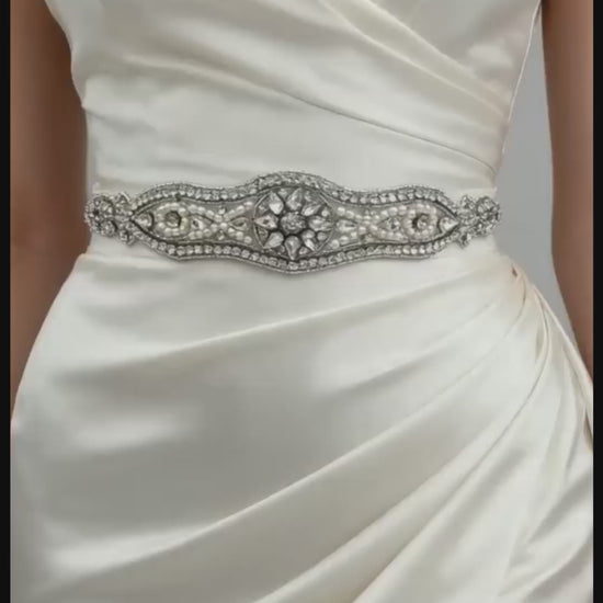Elevate your look with this white rhinestone and pearl belt, perfect for weddings, proms, and special occasions.