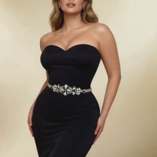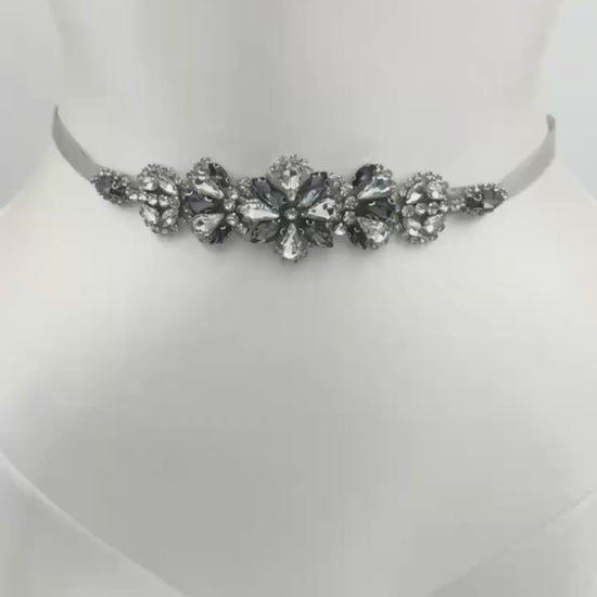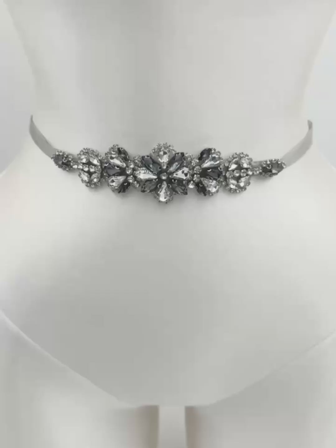 Elevate your look with this grey rhinestone belt, perfect for weddings, proms, and special occasions.