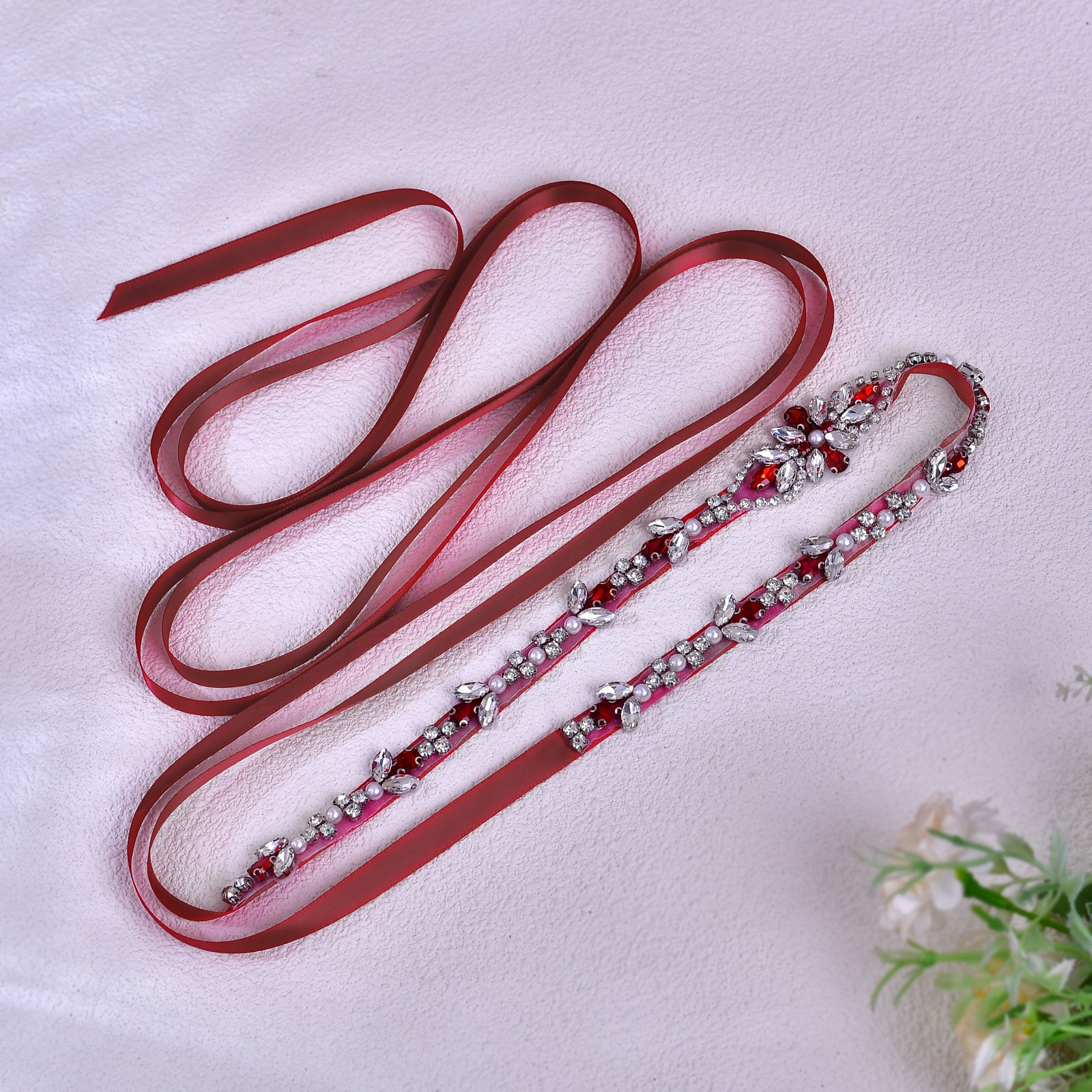 BRIDELLA BS09R Wedding Dress For Women, Red Diamond Belt, Wine Red Bow Tie