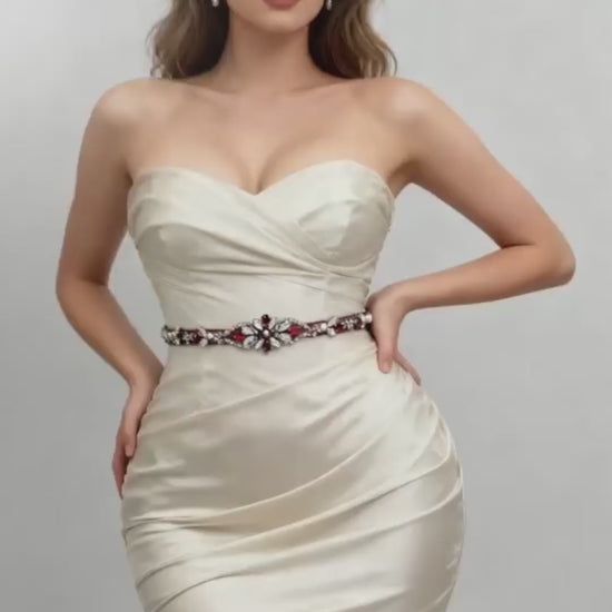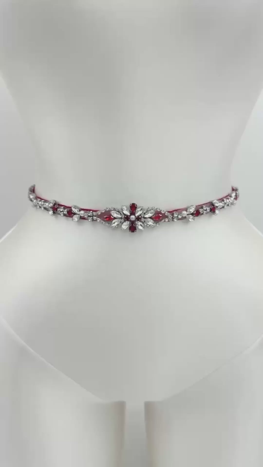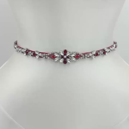 Elevate your look with this wine rhinestone and pearl belt, perfect for weddings, proms, and special occasions.