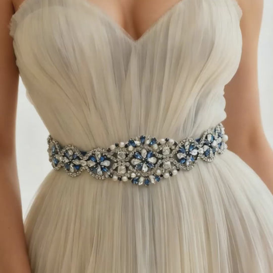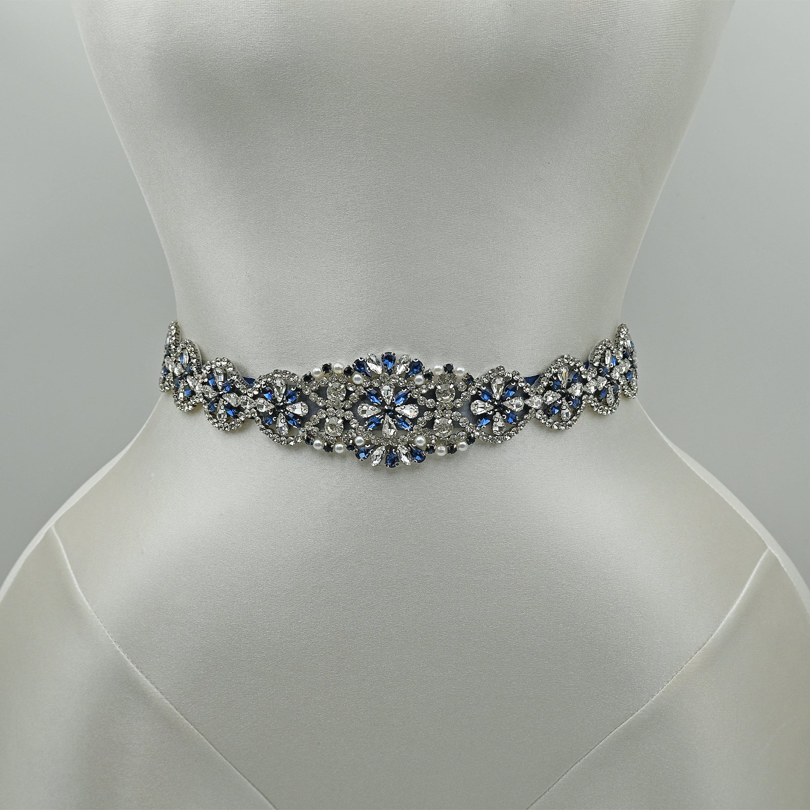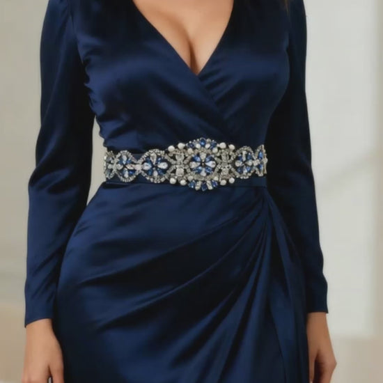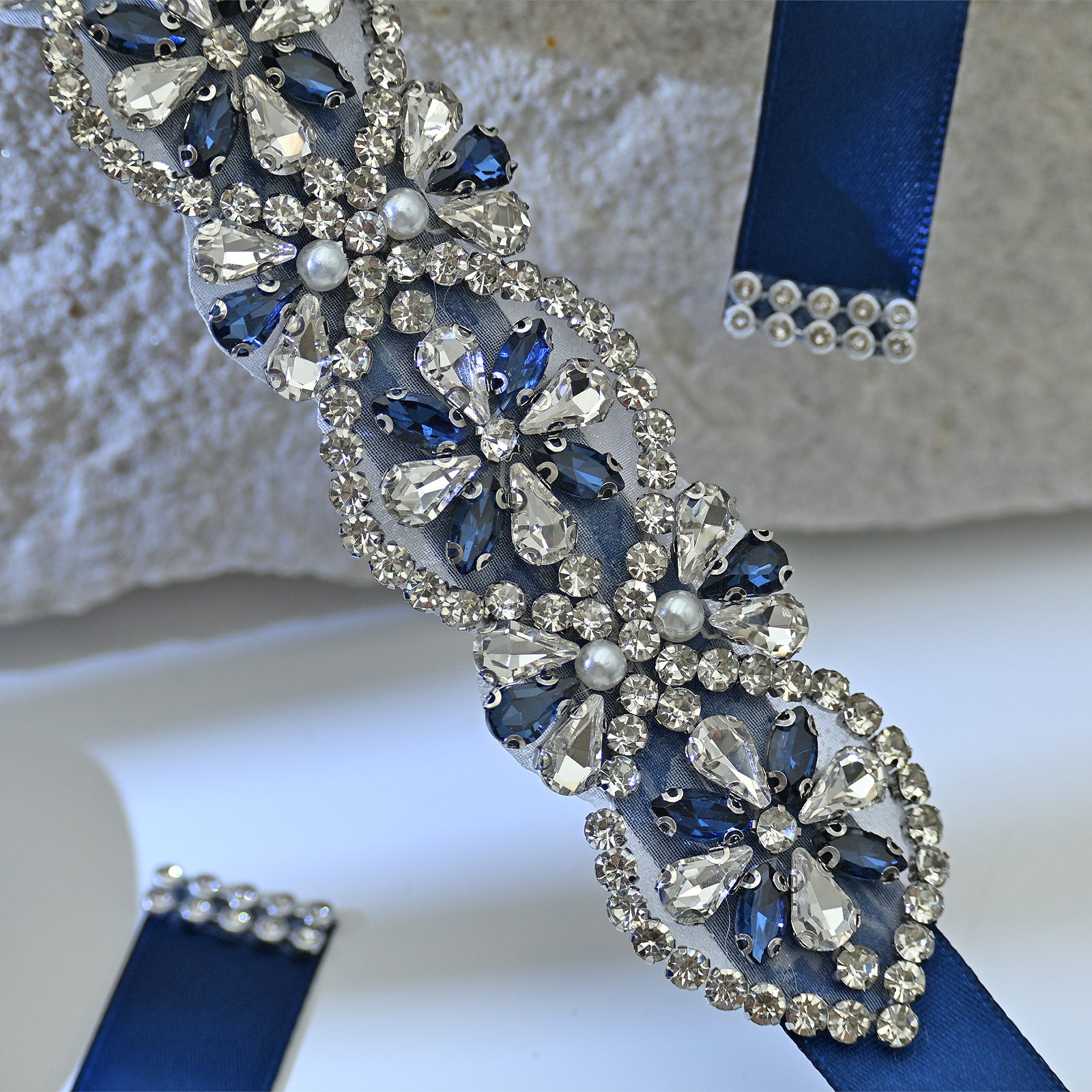 Elevate your look with this navy rhinestone belt, perfect for weddings, proms, and special occasions.