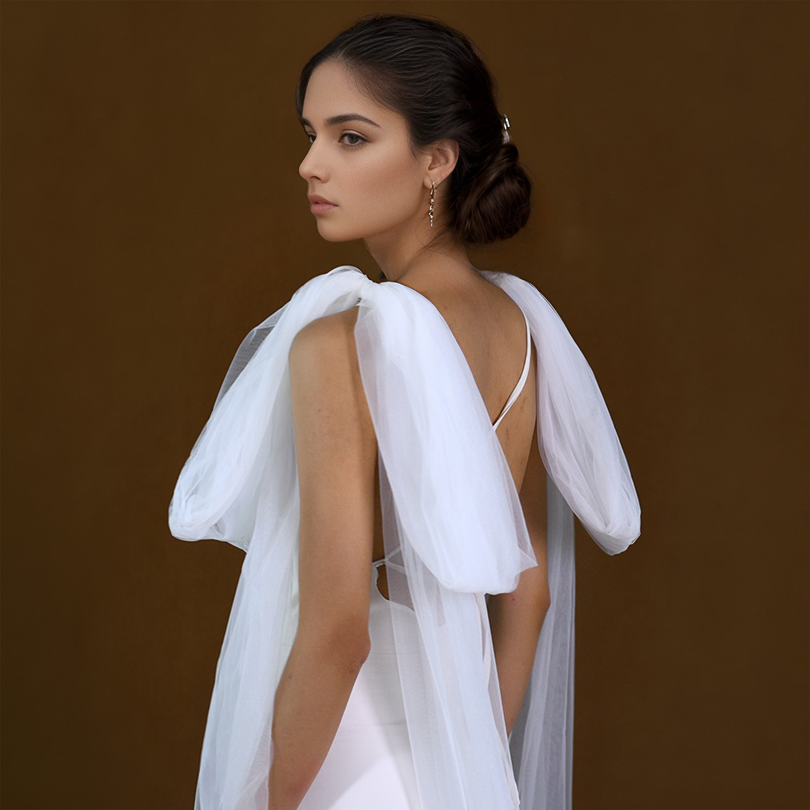 BRIDELLA BMG23 Wedding Shawl Wrap Shrug Women Dress Party Detachable Puff Sleeves Bridal Wings Accessories