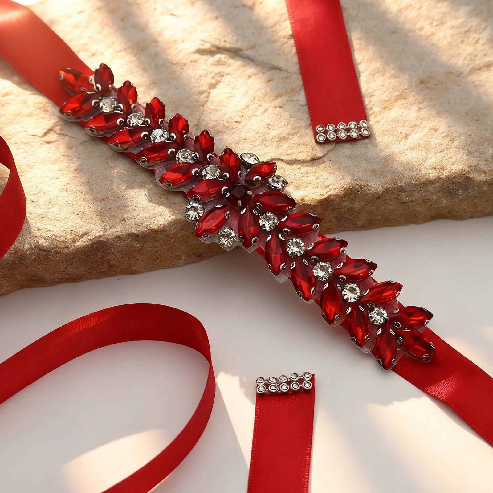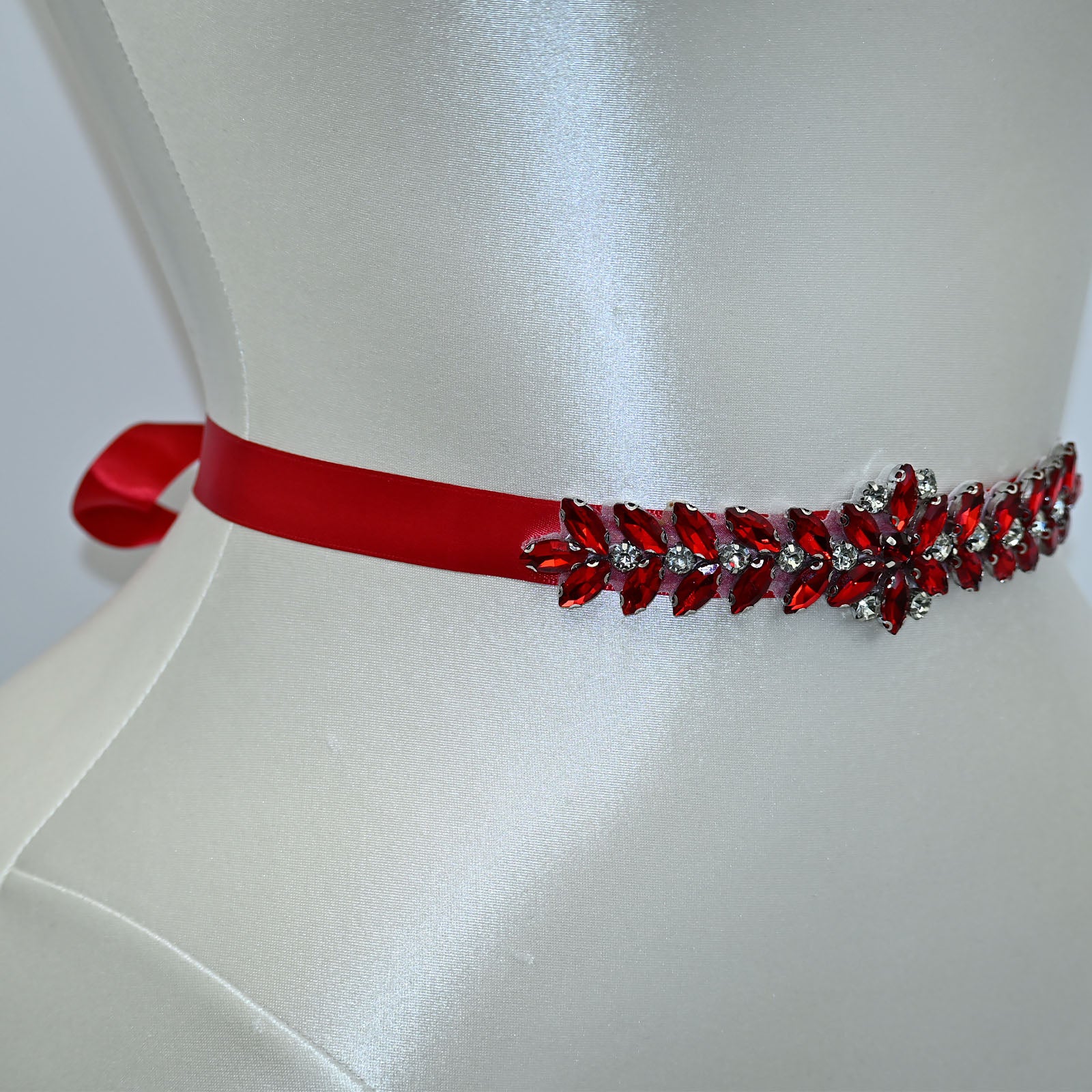 Elevate your look with this red rhinestone belt, perfect for weddings, proms, and special occasions.