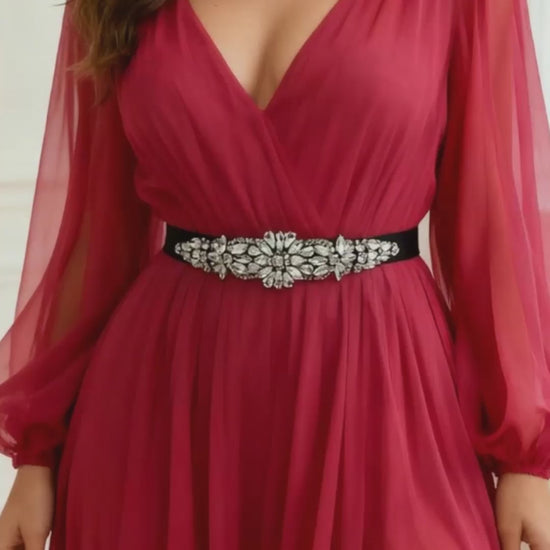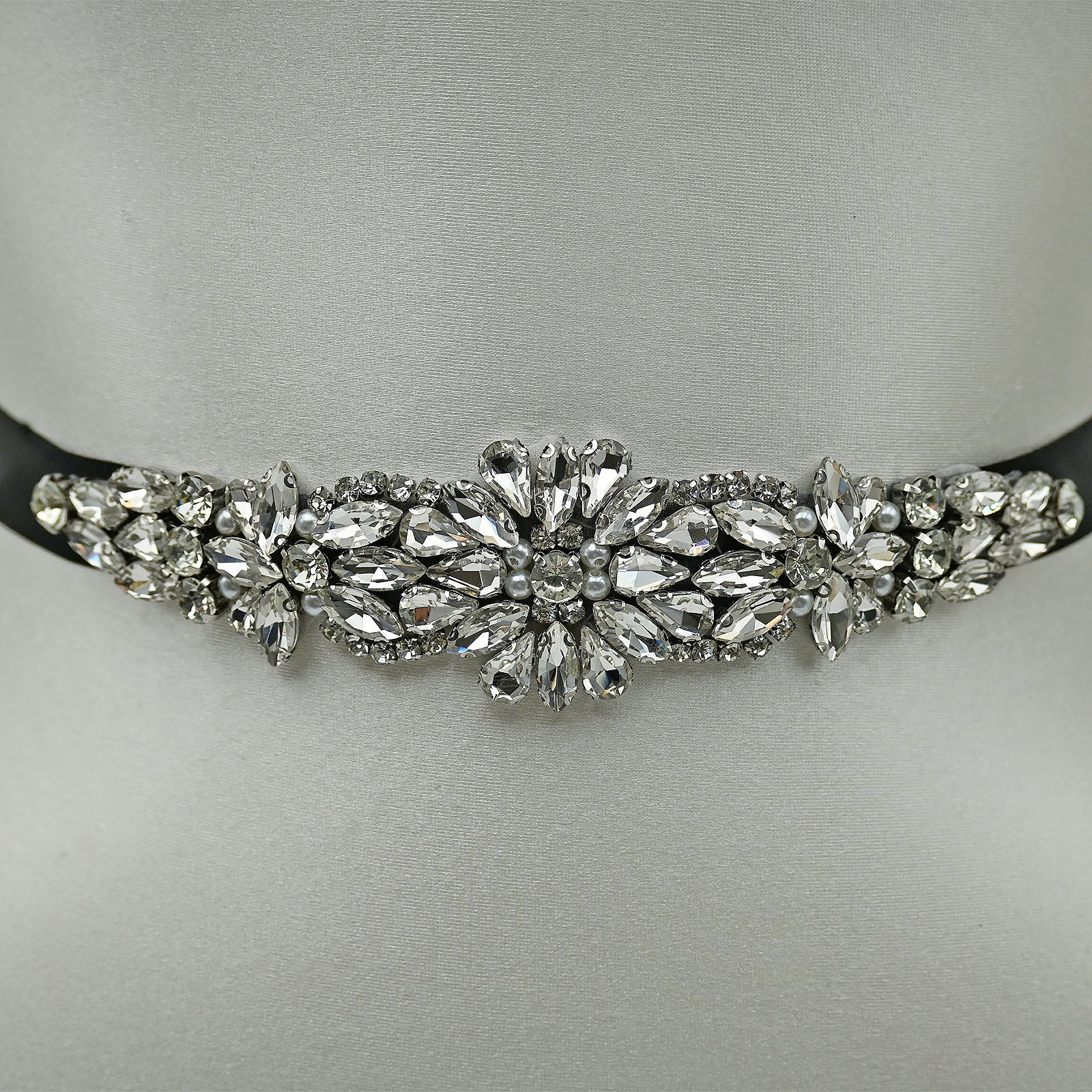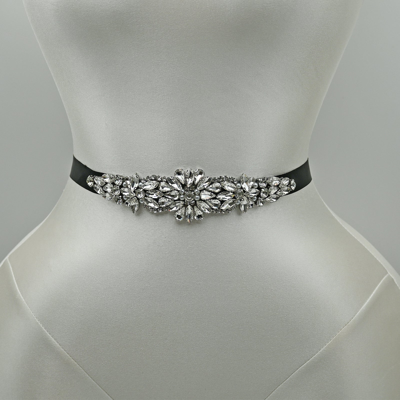 Elevate your look with this black rhinestone belt, perfect for weddings, proms, and special occasions.
