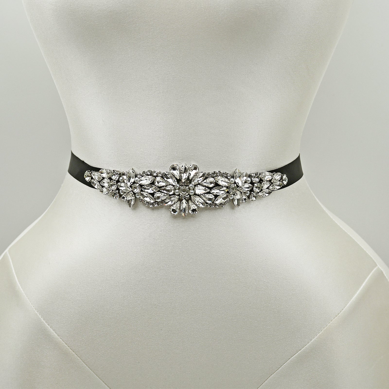 Black Rhinestone Bridal Belt Sash for Wedding - Bridella BS407