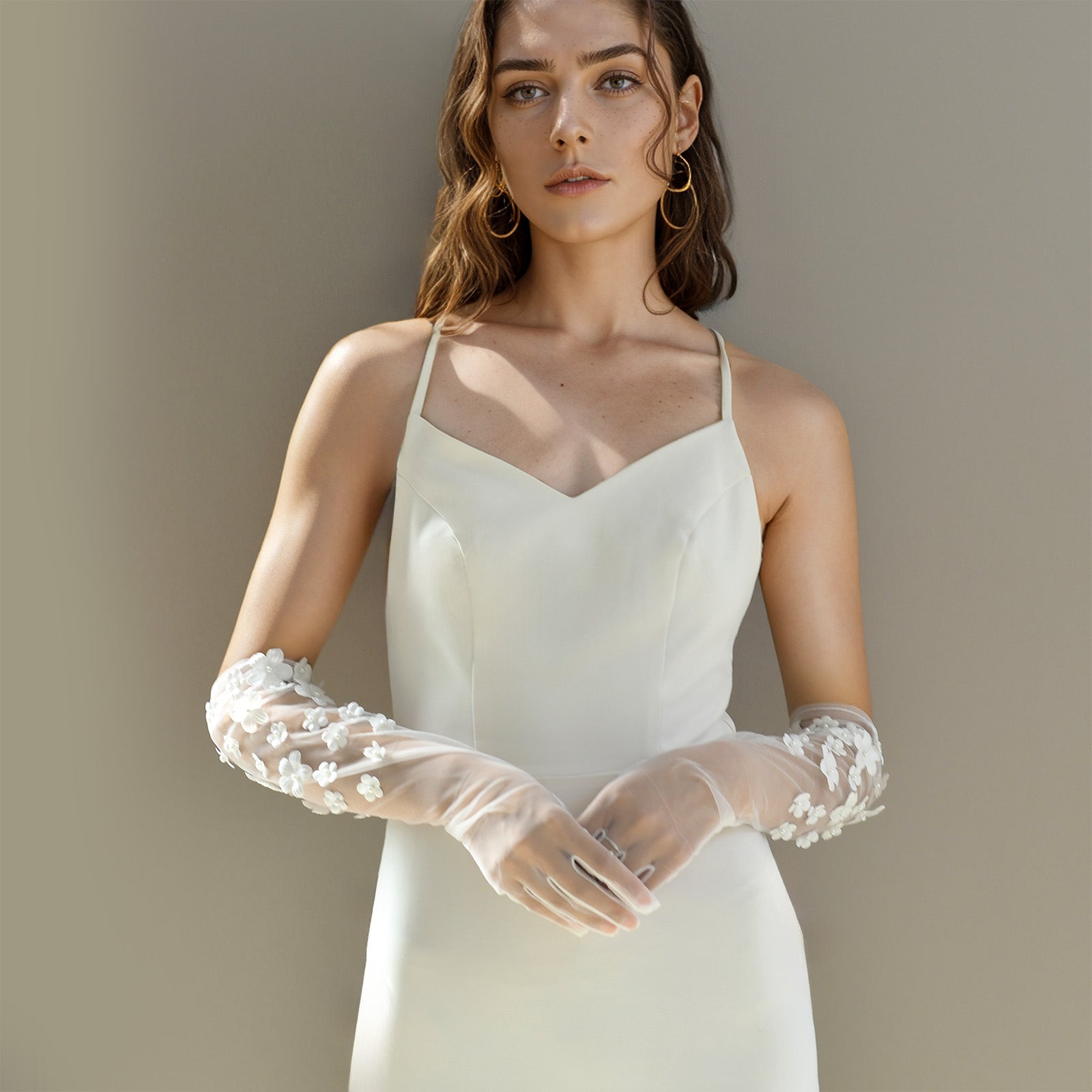BRIDELLA BMM15 Women's 3d Flower Bridal Long Full Finger Gloves Wedding Dress Accessories Performance Decoration